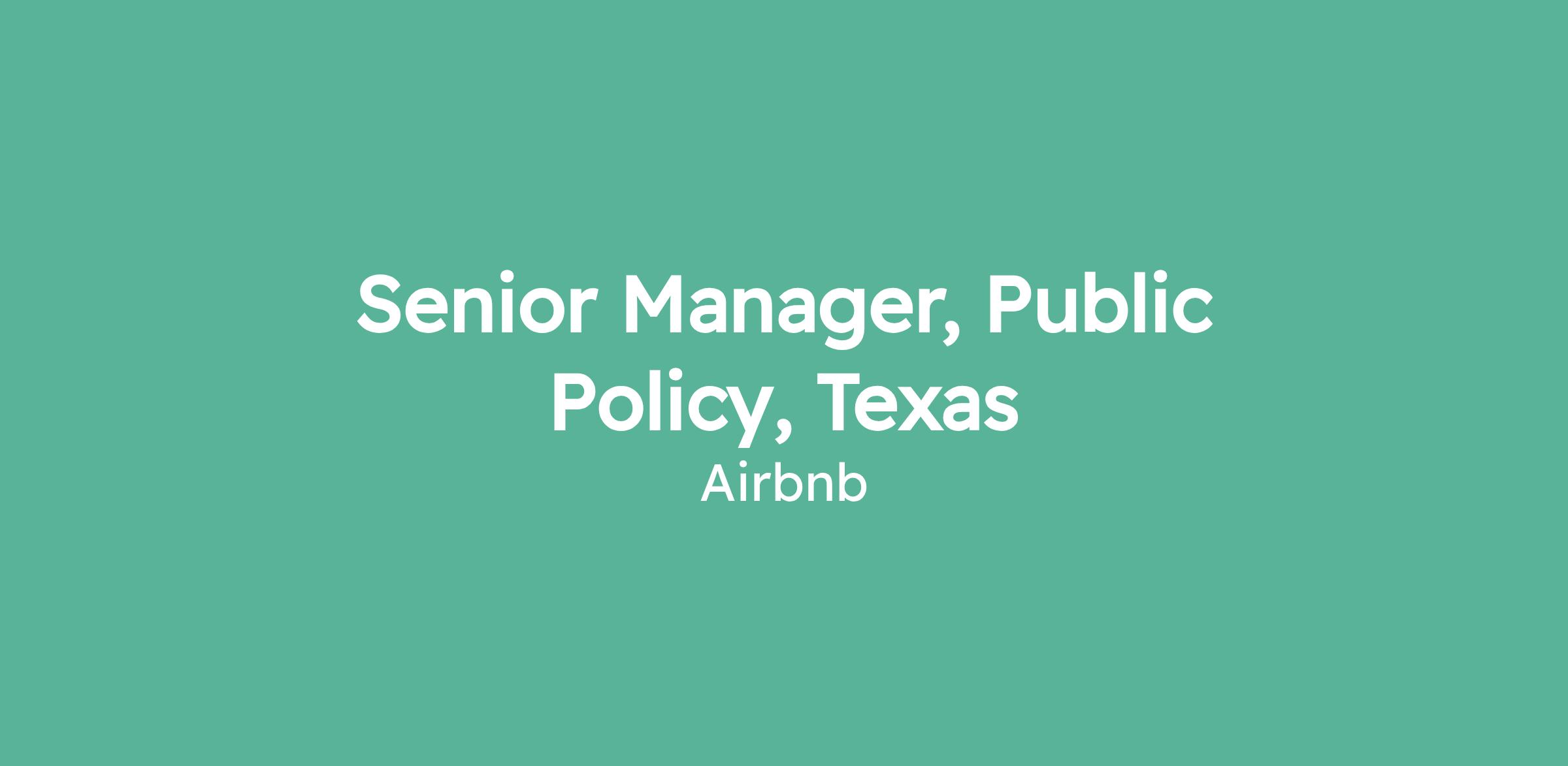 The Senior Manager, Public Policy will lead government relations, campaign and engagement strategies in the Texas, focused on engagement with local officials and regulators. The Senior Manager, Public Policy must be able to build trust and talk to local authorities to help them understand the contribution our community makes, and engage them in the process of partnerships that embrace the potential of the collaborative economy. The Senior Manager, Public Polciy must demonstrate excellent project management skills and a consistent ability to think creatively about problems and solutions.