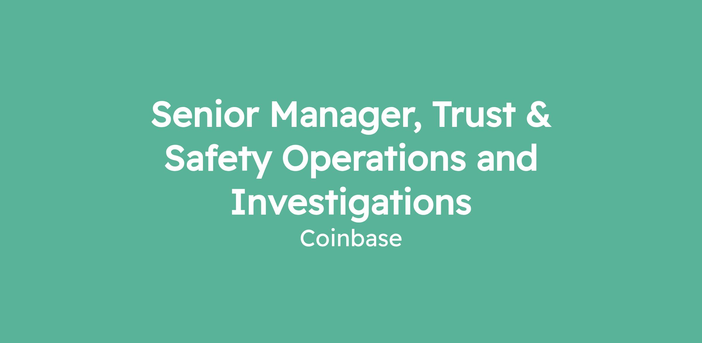 Senior Manager, Trust & Safety Operations and Investigations