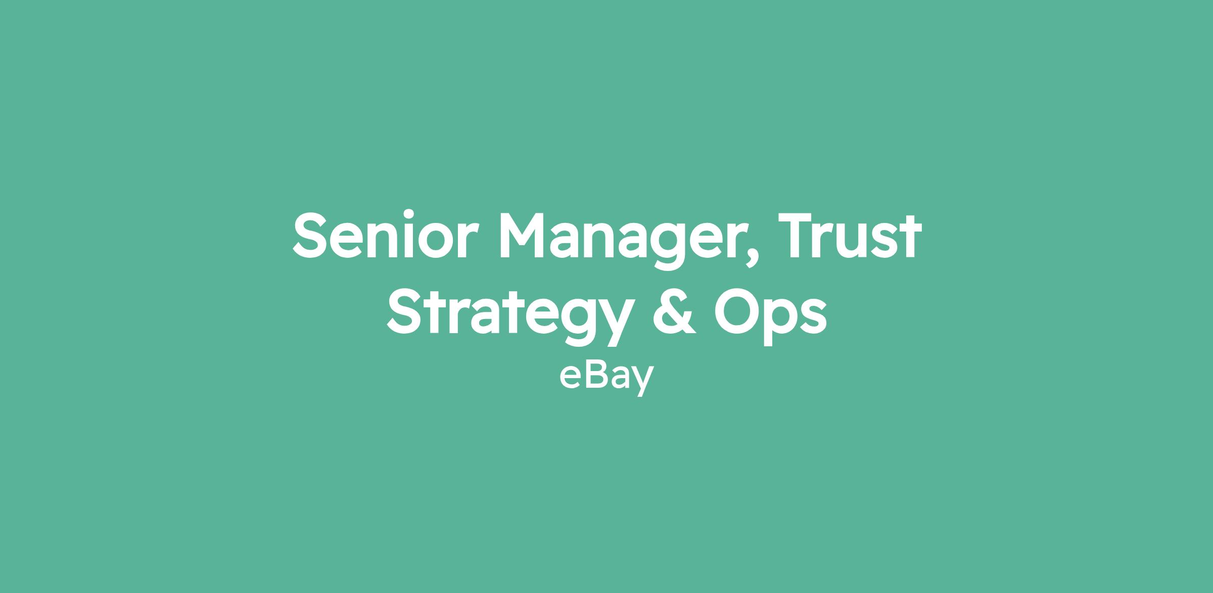 As the Senior Manager of Trust Strategy & Operations, you will lead cross-organizational alignment across Trust, Risk, Compliance/Legal, Regulatory, Product, and Analytics to keep eBay safe, trusted, and compliant while improving the end-to-end buyer and seller experience. You’ll do this by aligning decision-makers early, standardizing shared success metrics, surfacing reusable capabilities, and driving high-impact initiatives that drive and protect gross merchandise volume (GMV).