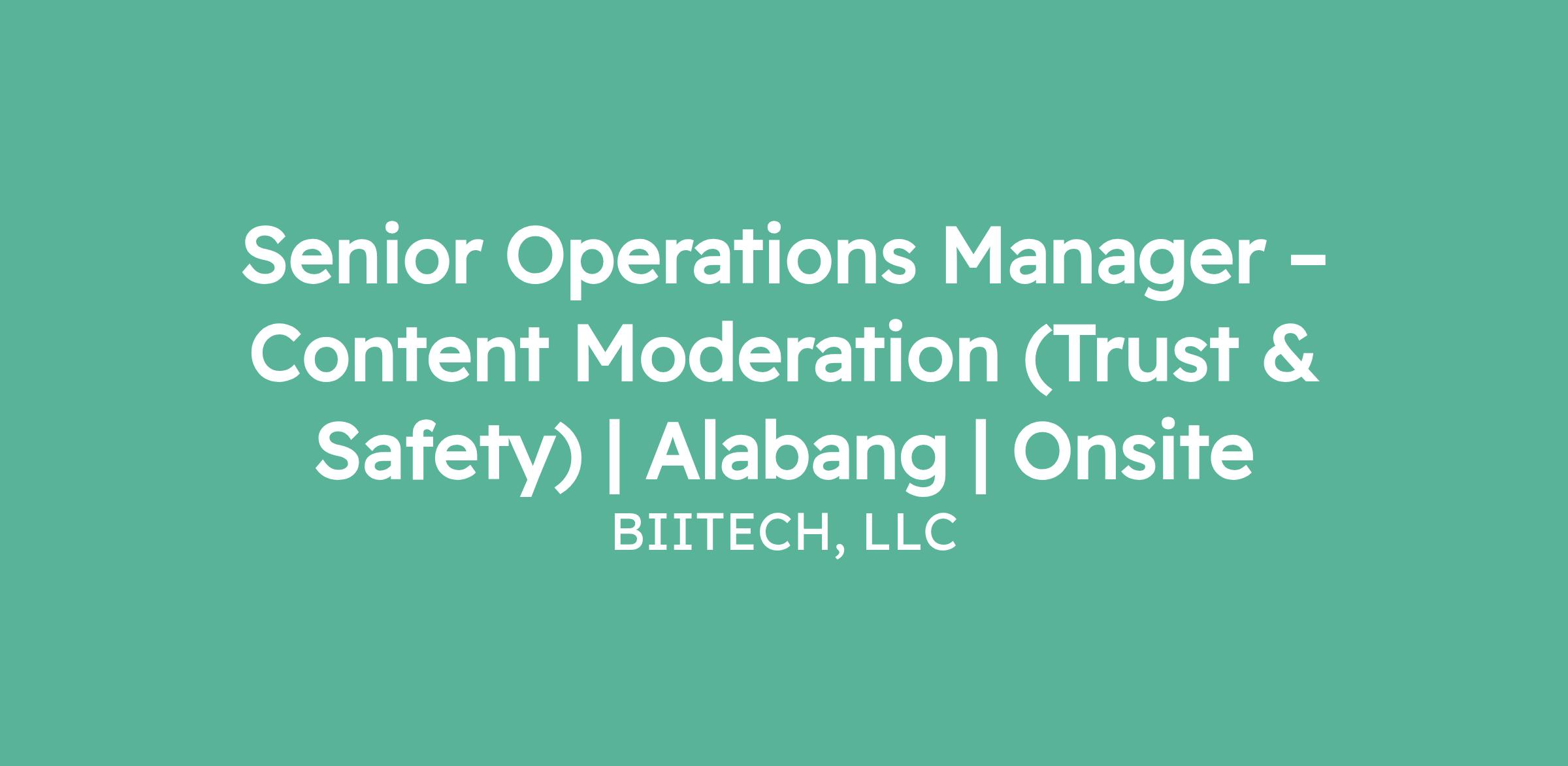 We are actively looking for an experienced Senior Operations Manager to lead our Content Moderation (Trust & Safety) program in Alabang. If you have a strong BPO leadership background and hands-on experience in Trust & Safety, this is a great opportunity to step into a high-impact role.
