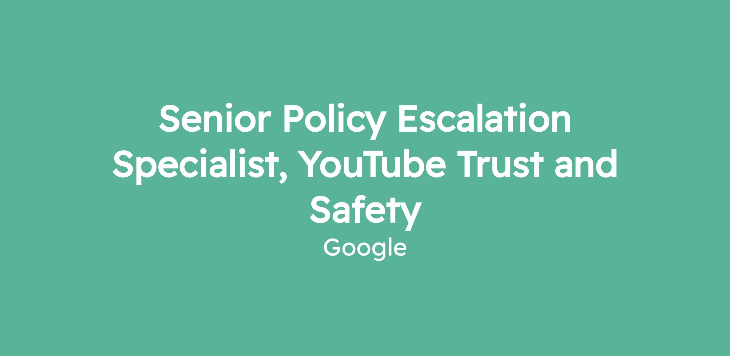 Senior Policy Escalation Specialist, YouTube Trust and Safety