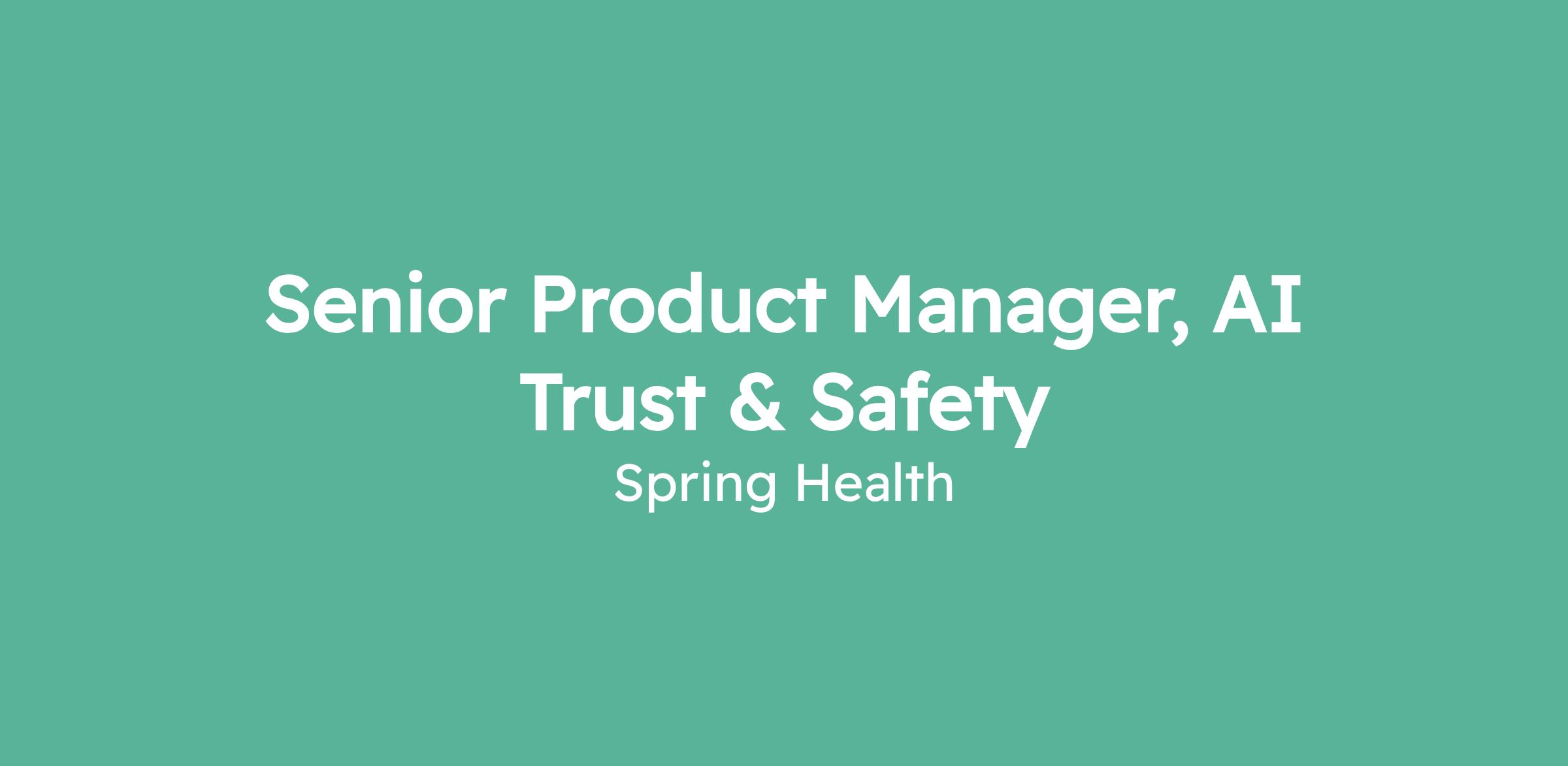 The Senior Product Manager for AI Trust & Safety will own the roadmap and champion the standards to ensure AI experiences in Spring Health’s products are safe and trustworthy. You will shape the definition of 'safe and effective' AI by leading efforts in model evaluation, operational approval gates, and safety measurement, collaborating with engineering, data science, legal, and clinical stakeholders to implement this strategy. Reporting to the Senior Director of Product, Customer Value, this hybrid role is based at our New York City office (60 Madison Avenue), with 2-3 days per week in-office required.