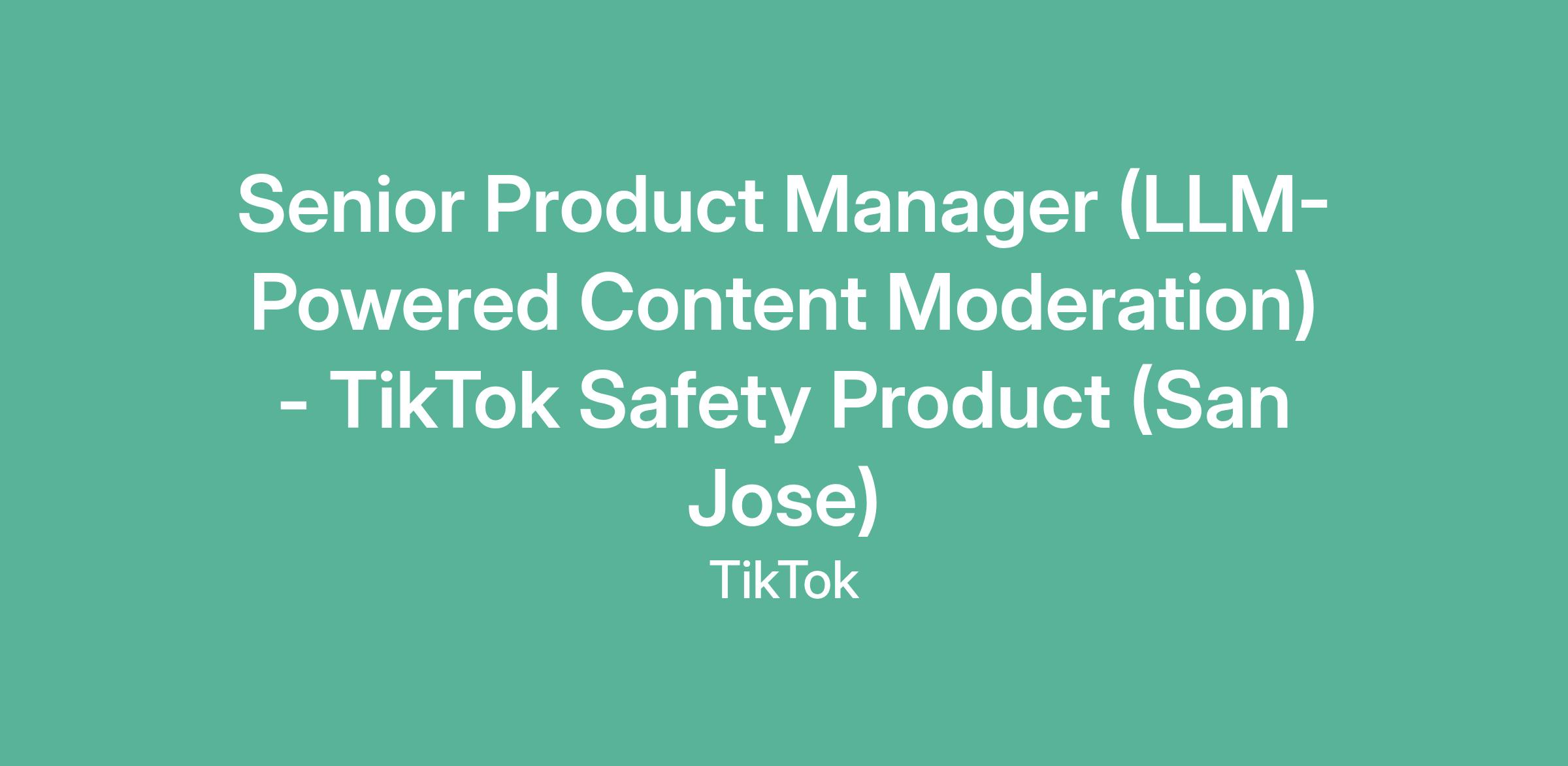 Senior Product Manager (LLM-Powered Content Moderation) - TikTok Safety Product (San Jose)