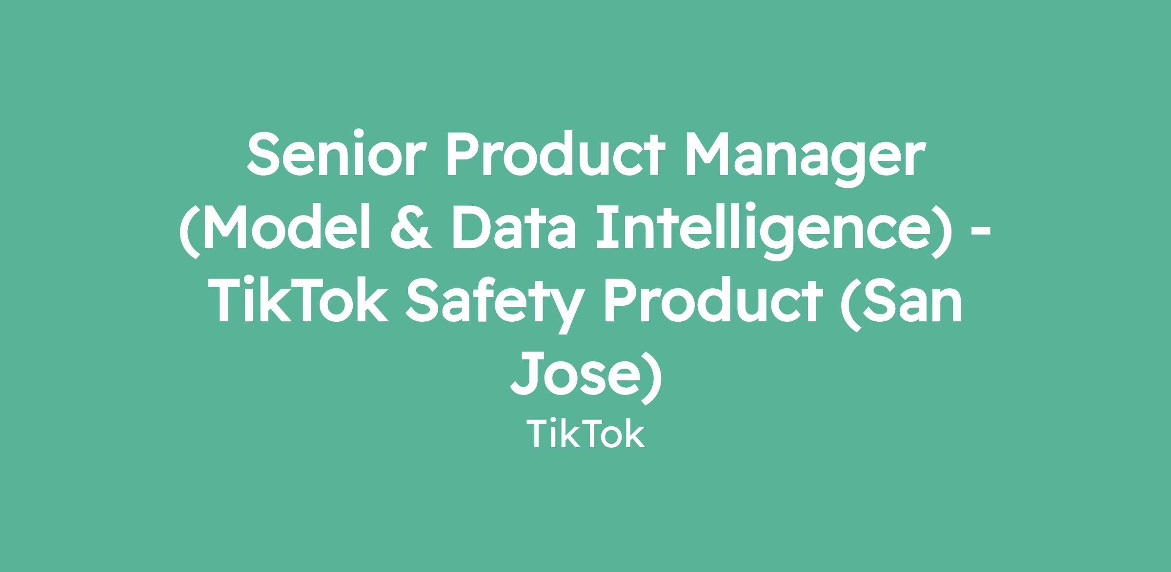 Senior Product Manager (Model & Data Intelligence) - TikTok Safety Product (San Jose)