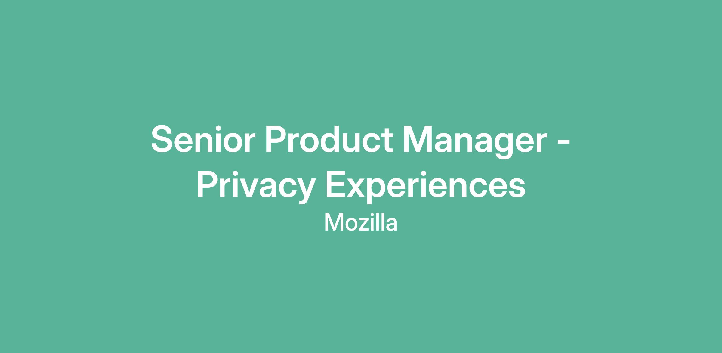 Senior Product Manager - Privacy Experiences