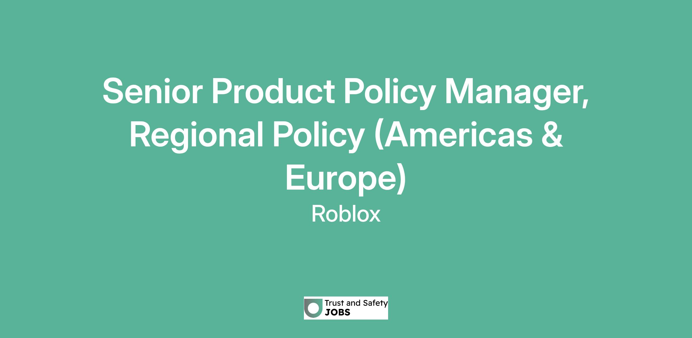 We are hiring a Senior Product Policy Manager with expertise in regional compliance and localized policy contextualization for the Americas and Europe. You will join a growing team that works across the Americas, Europe, Middle East, Africa, LatAm, Oceania, India and Asia-Pacific, and is responsible for aligning Roblox's product with global and regional norms by adapting our policies to evolving international and regional regulations and expectations.