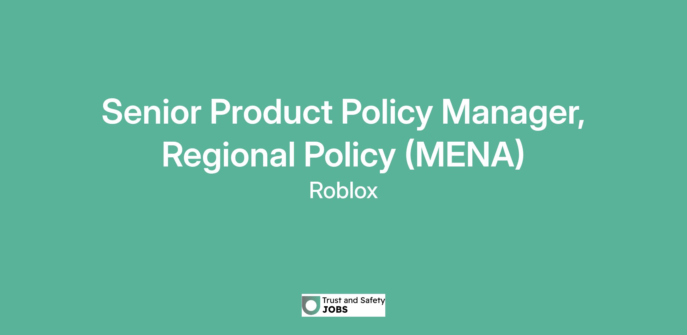 We are hiring a Senior Product Policy Manager with expertise in regional compliance and localized policy contextualization for the Middle East and North Africa (MENA) region. You will join a growing team that works across the Americas, Europe, Middle East, Africa, LatAm, Oceania, India and Asia-Pacific, and is responsible for aligning Roblox's product with global and regional norms by adapting our policies to evolving international and regional regulations and expectations.