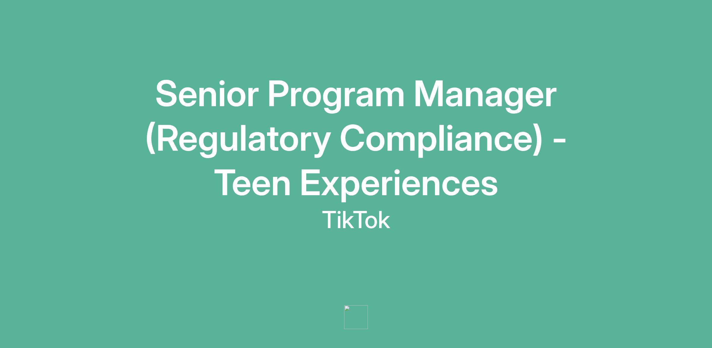 Senior Program Manager (Regulatory Compliance) - Teen Experiences