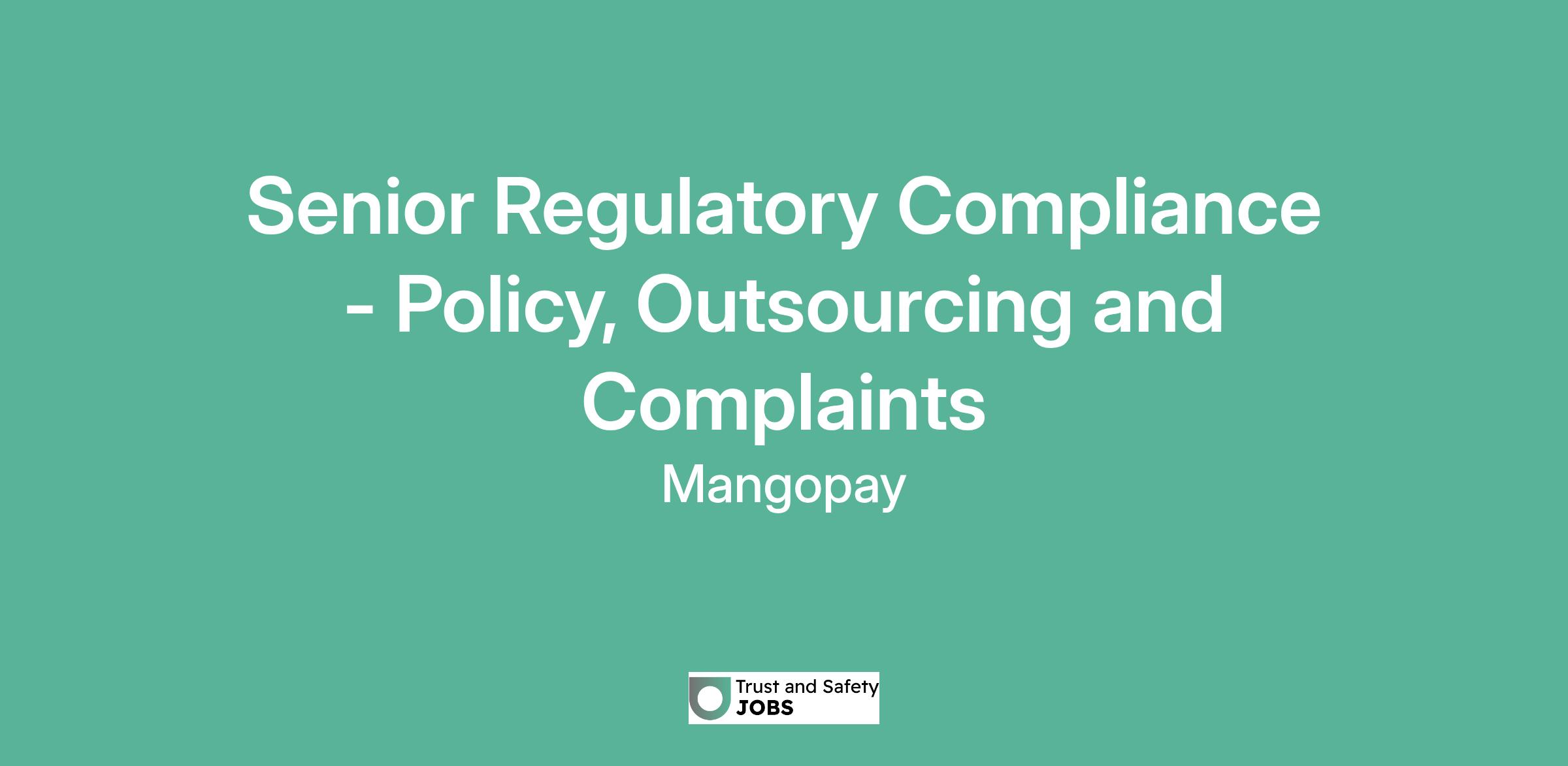 Senior Regulatory Compliance - Policy, Outsourcing and Complaints