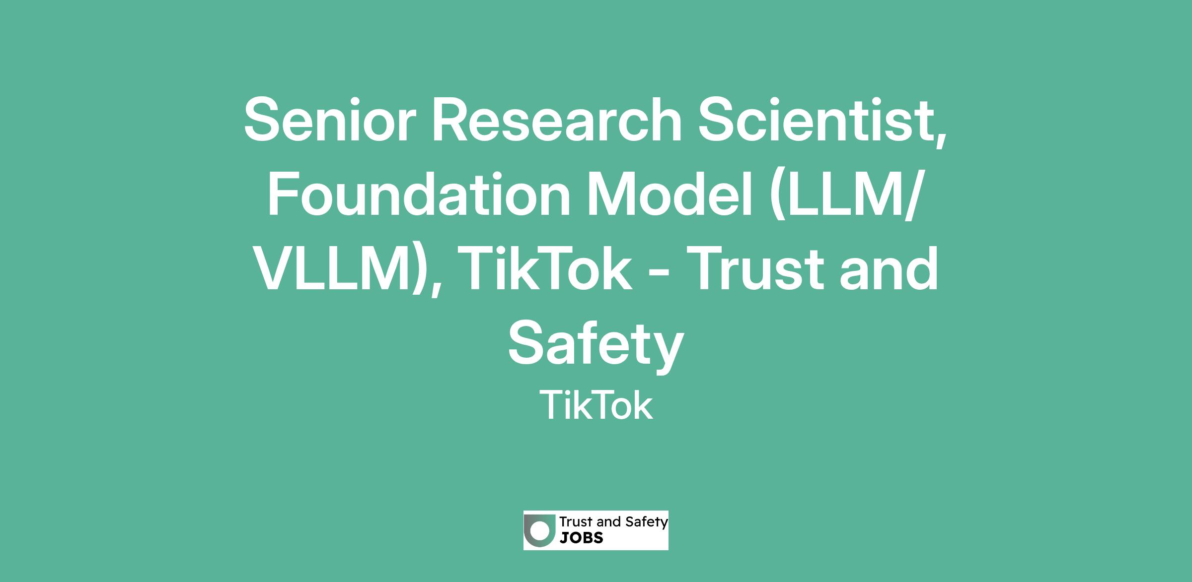 Senior Research Scientist, Foundation Model (LLM/ VLLM), TikTok - Trust and Safety