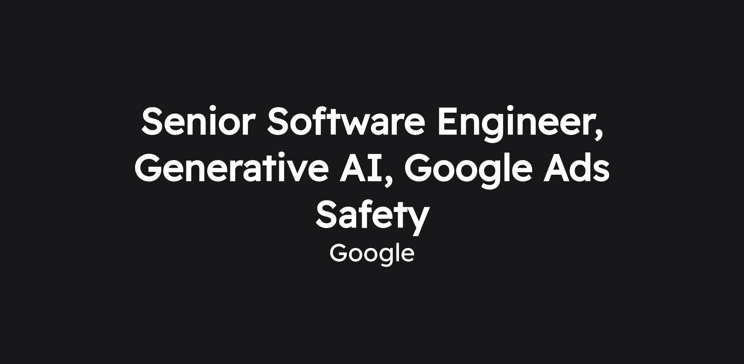Senior Software Engineer, Generative AI, Google Ads Safety