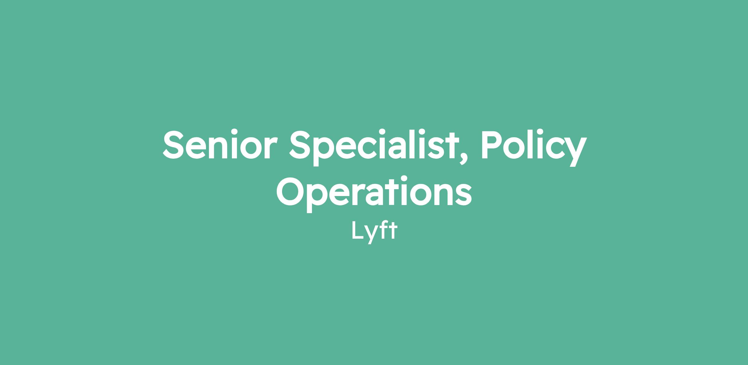 Senior Specialist, Policy Operations