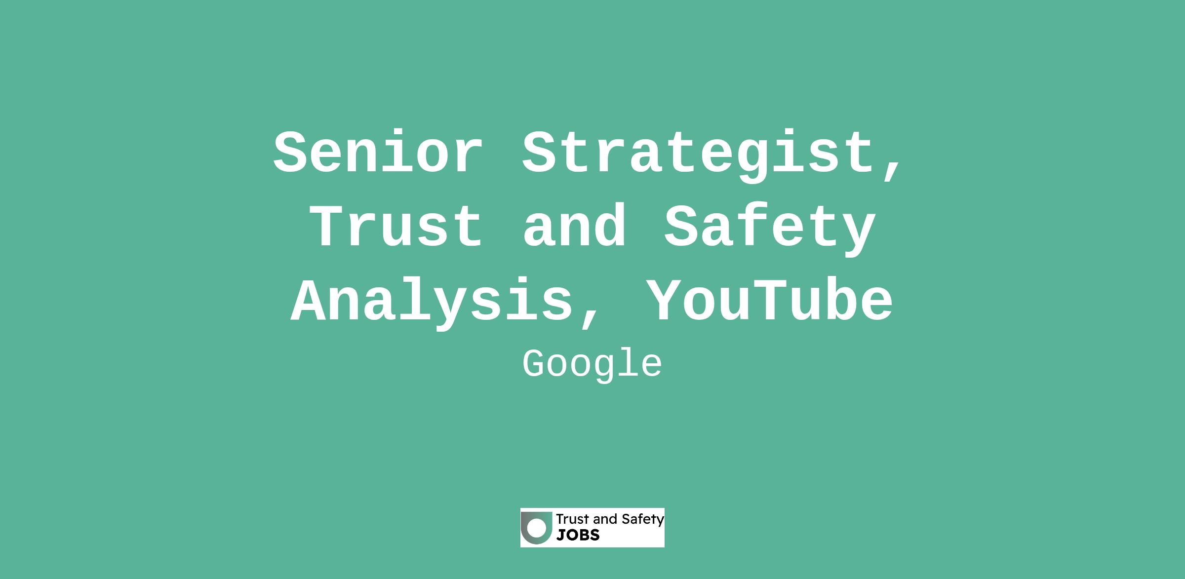 Senior Strategist, Trust and Safety Analysis, YouTube