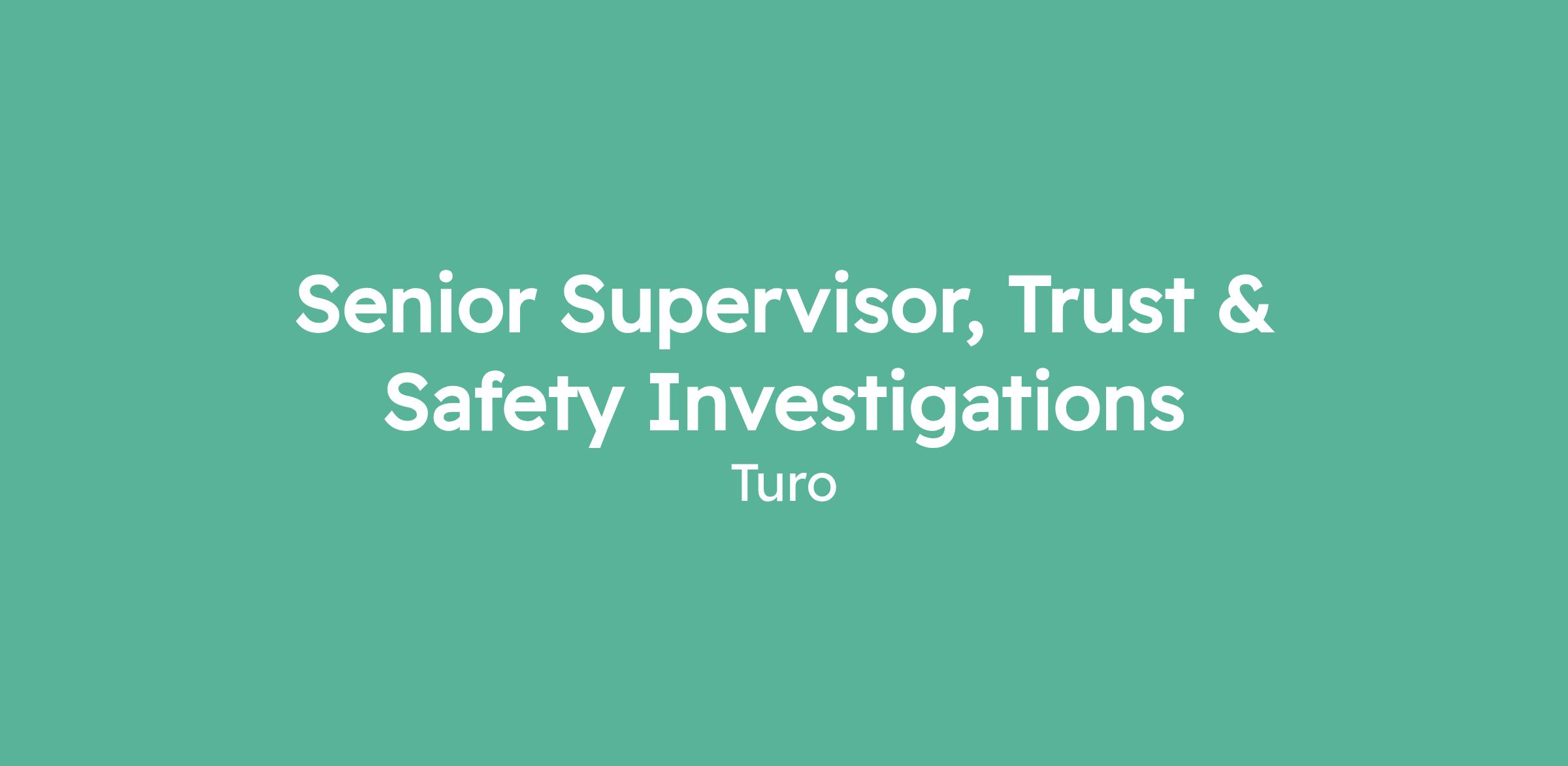 We are seeking an experienced Investigator with supervisory expertise to lead and manage a team of Trust & Safety Investigators. This role oversees a team responsible for investigating a wide range of risk events and providing essential Trust & Safety support to the Turo community.