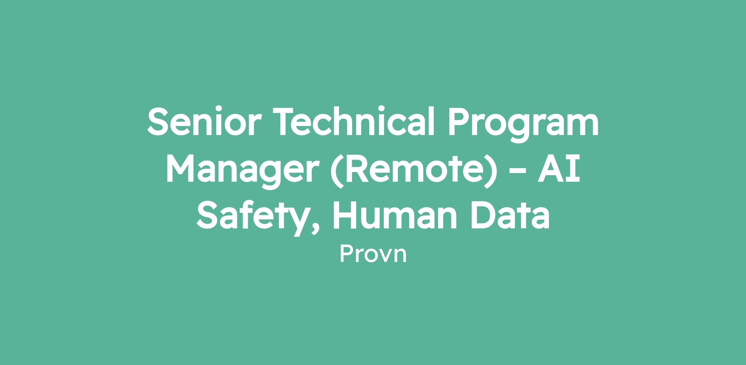 Provn is hiring a Senior Technical Program Manager - REMOTE, for a company working with leading AI model builders and clinical researchers to keep humans safe in the AI era. Their work sits at the intersection of psychology, clinical expertise, and frontier AI safety.