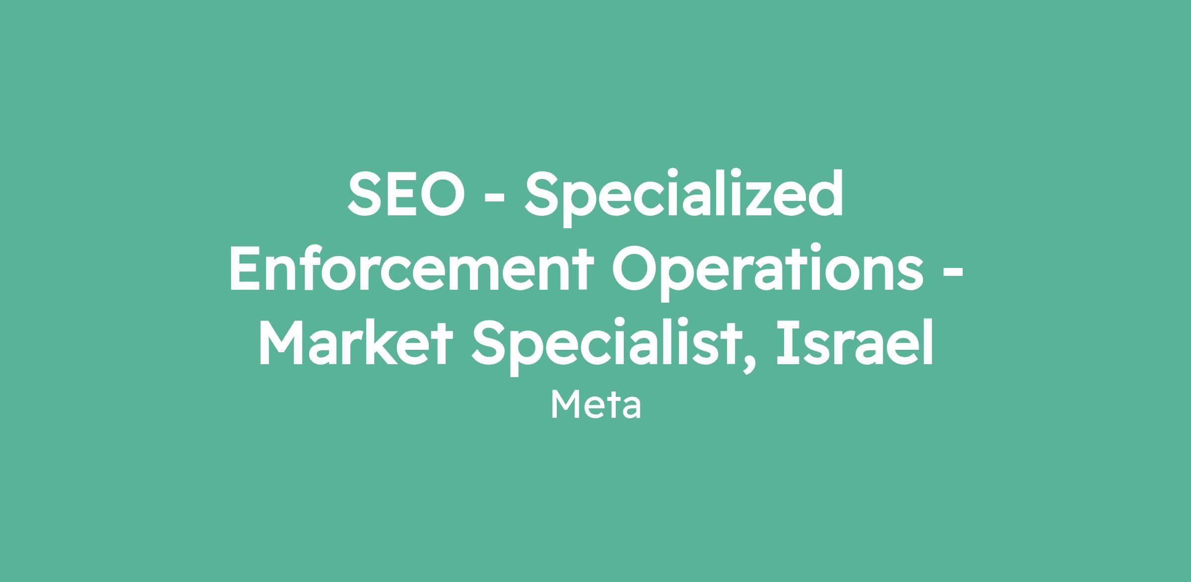 SEO - Specialized Enforcement Operations - Market Specialist, Israel