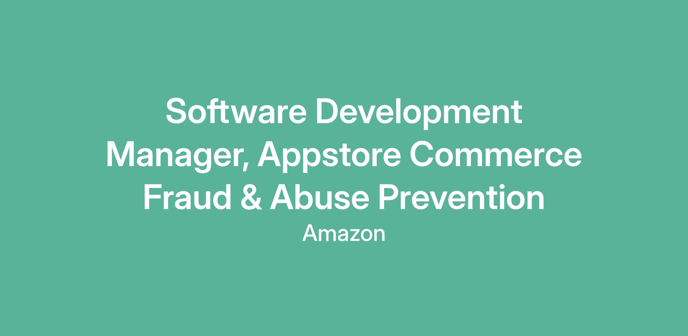 Software Development Manager, Appstore Commerce Fraud & Abuse Prevention