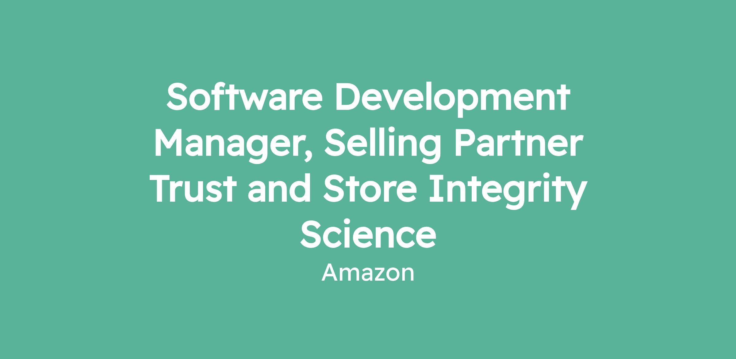 Software Development Manager, Selling Partner Trust and Store Integrity Science