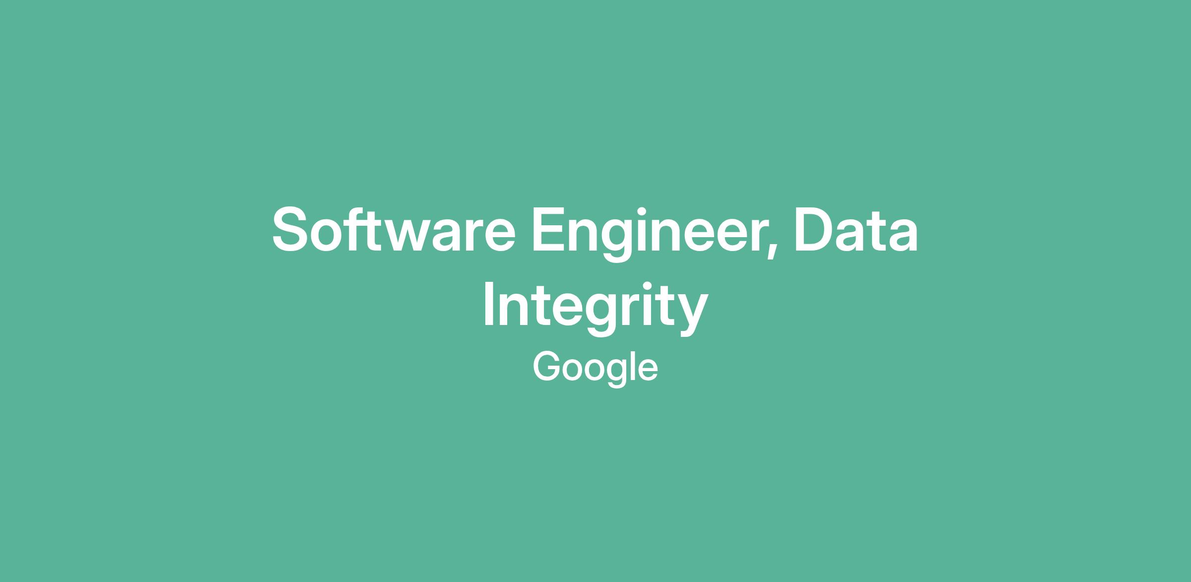 Software Engineer, Data Integrity