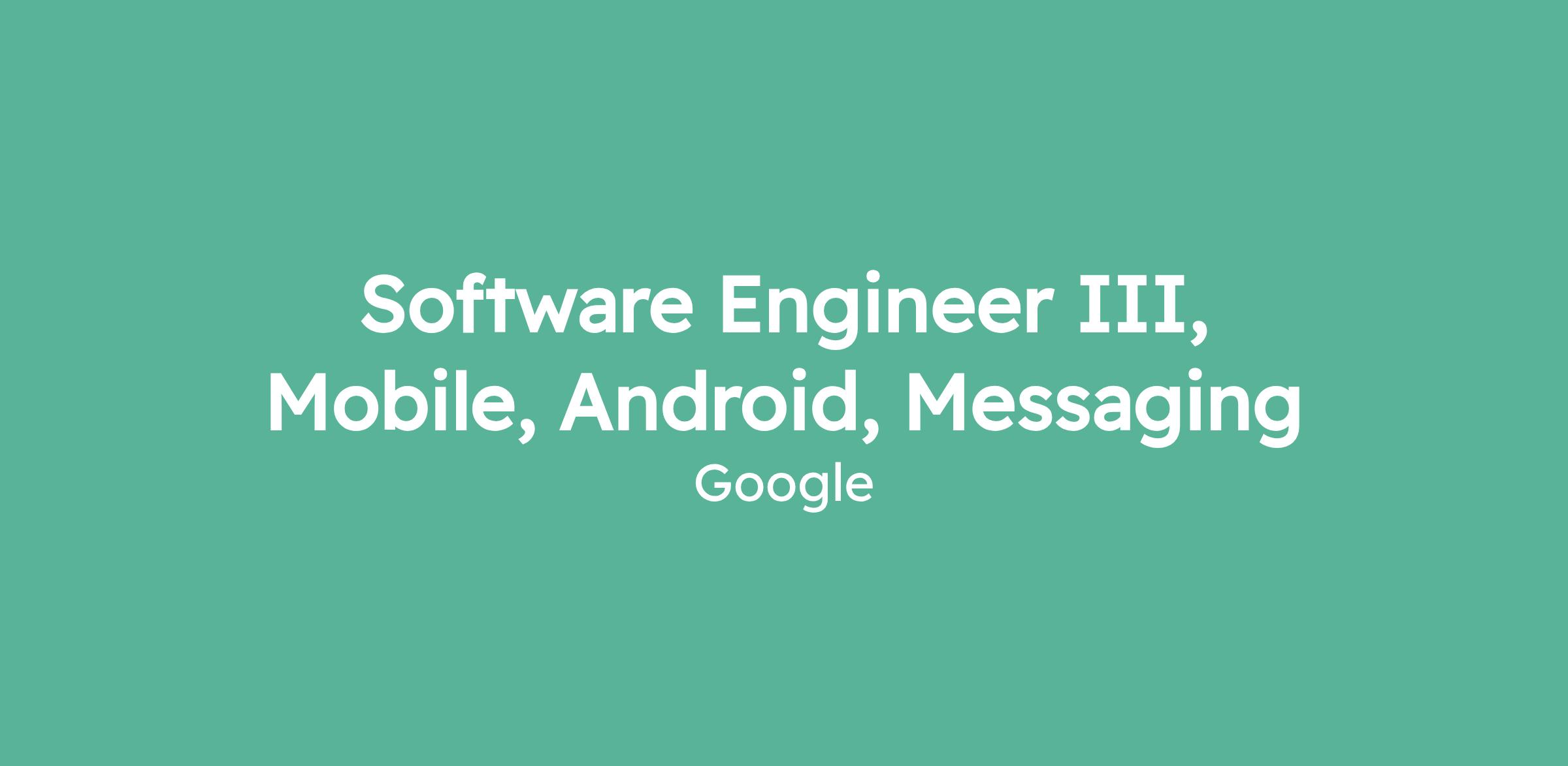 Software Engineer III, Mobile, Android, Messaging