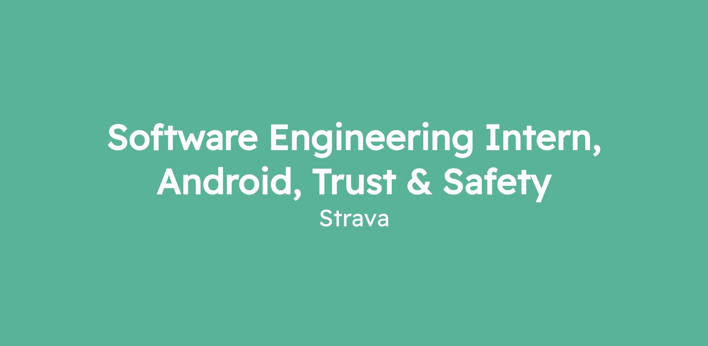 Strava is looking for software engineering interns for a range of disciplines. This mobile Android internship would be on the Trust & Safety team. The Trust & Safety team is responsible for building the features, tools, systems, and infrastructure that protect the integrity of Strava’s platform and support a safe, trusted experience for athletes worldwide. The team focuses on developing scalable and resilient solutions that detect abuse, prevent misuse, and uphold community standards.