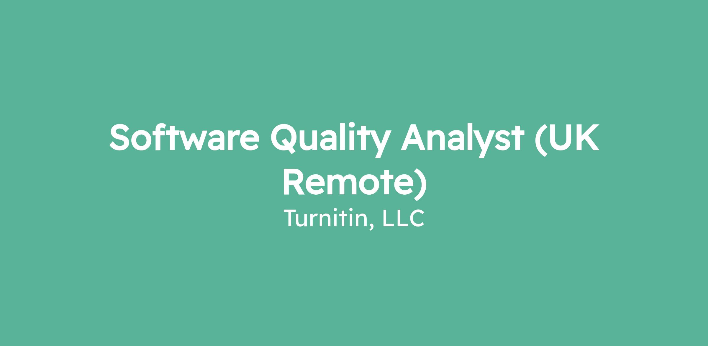 Software Quality Analyst (UK Remote)