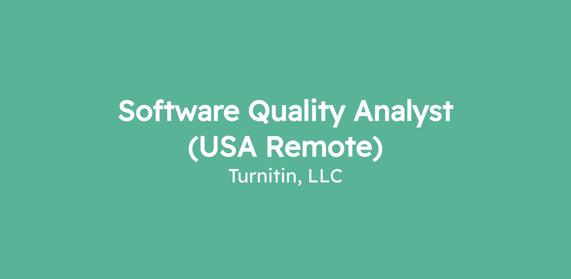 Software Quality Analyst (USA Remote)