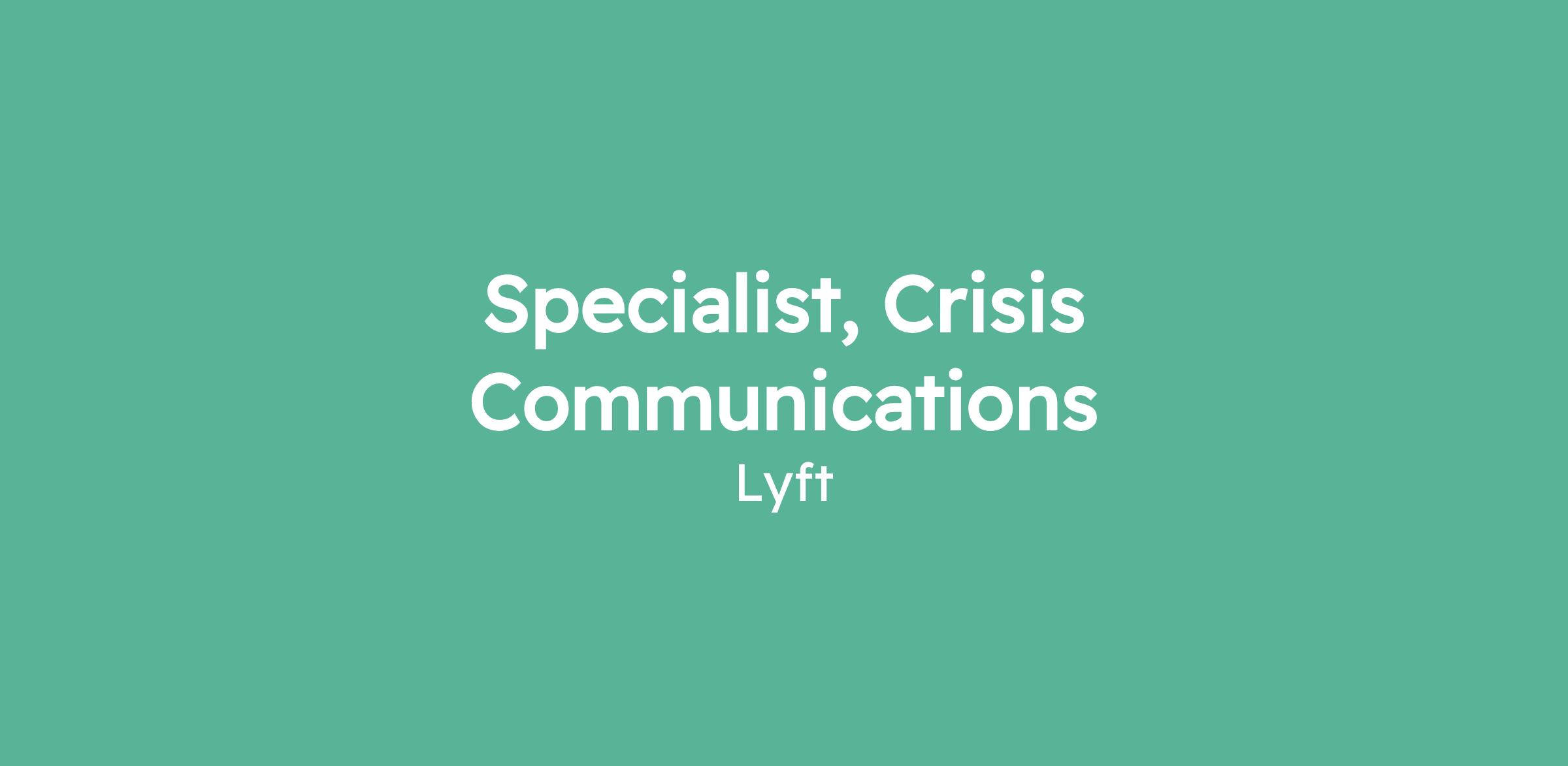 Specialist, Crisis Communications