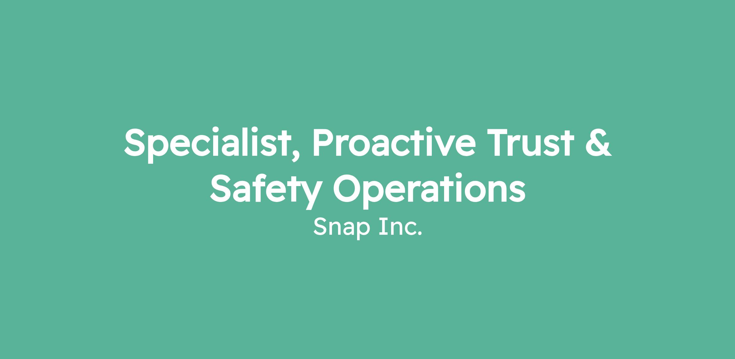 Specialist, Proactive Trust & Safety Operations