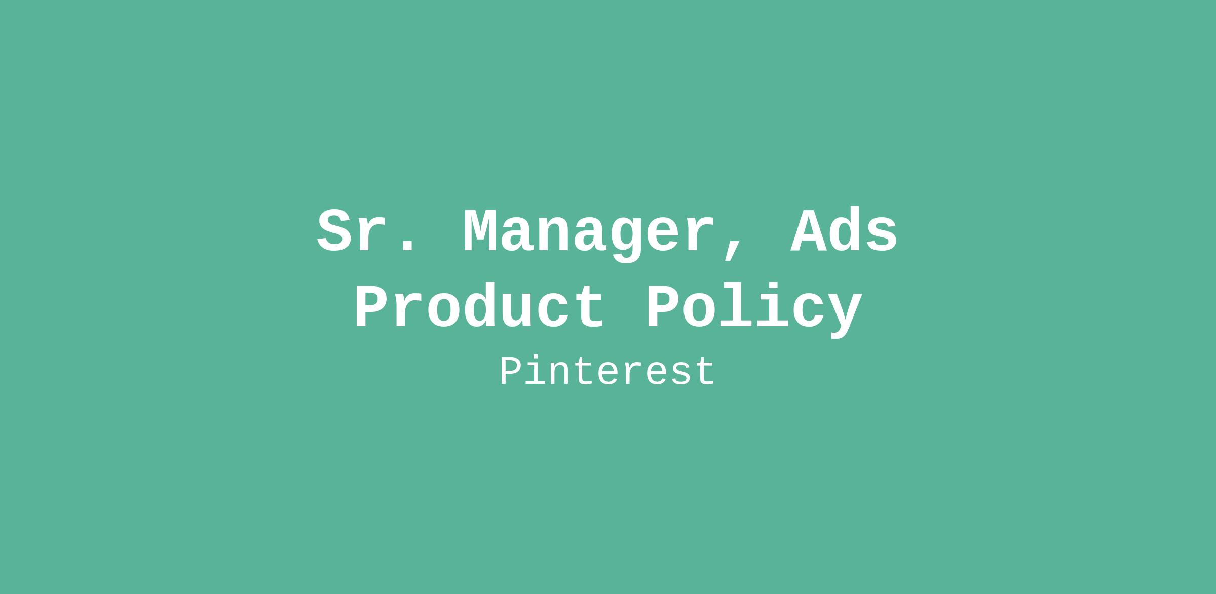 We are looking for a Sr. Manager, Ads Product Policy to lead our ad, merchant and spam policy team. As leader of our policy team, you will oversee the development of Pinterest’s ad, merchant, shopping and brand safety and spam policies, engage with a range of internal and external stakeholders and manage a team of policy analysts and managers. You will also partner with the Senior Director, Product Policy to set strategy for Pinterest’s overall Policy team, ensuring Pinterest’s policies support the company’s mission, keep our global community of Pinners safe, and enable responsible revenue growth.