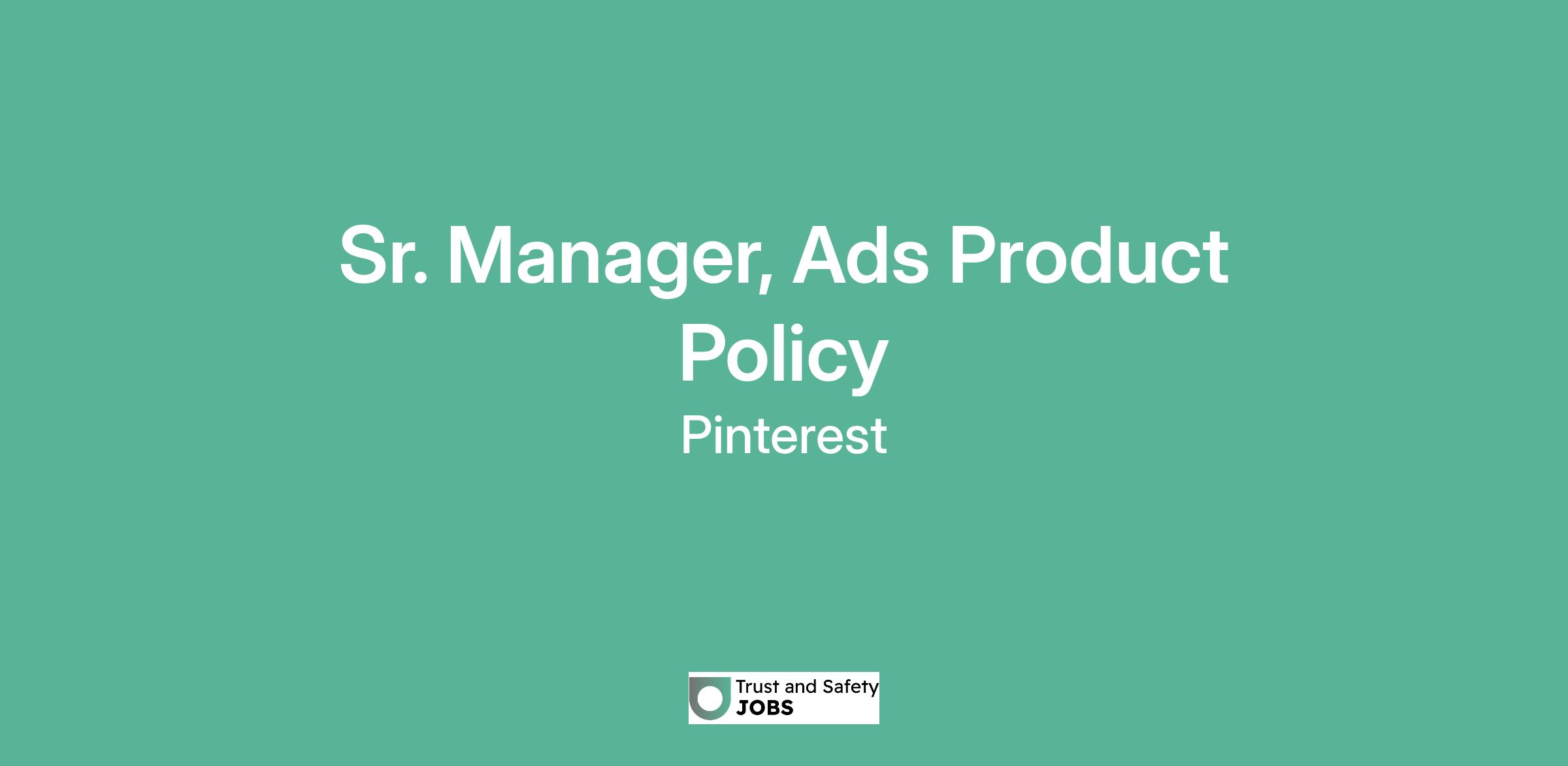 We are looking for a Sr. Manager, Ads Product Policy to lead our ad, merchant and spam policy team. As leader of our policy team, you will oversee the development of Pinterest’s ad, merchant, shopping and brand safety and spam policies, engage with a range of internal and external stakeholders and manage a team of policy analysts and managers. You will also partner with the Senior Director, Product Policy to set strategy for Pinterest’s overall Policy team, ensuring Pinterest’s policies support the company’s mission, keep our global community of Pinners safe, and enable responsible revenue growth.
