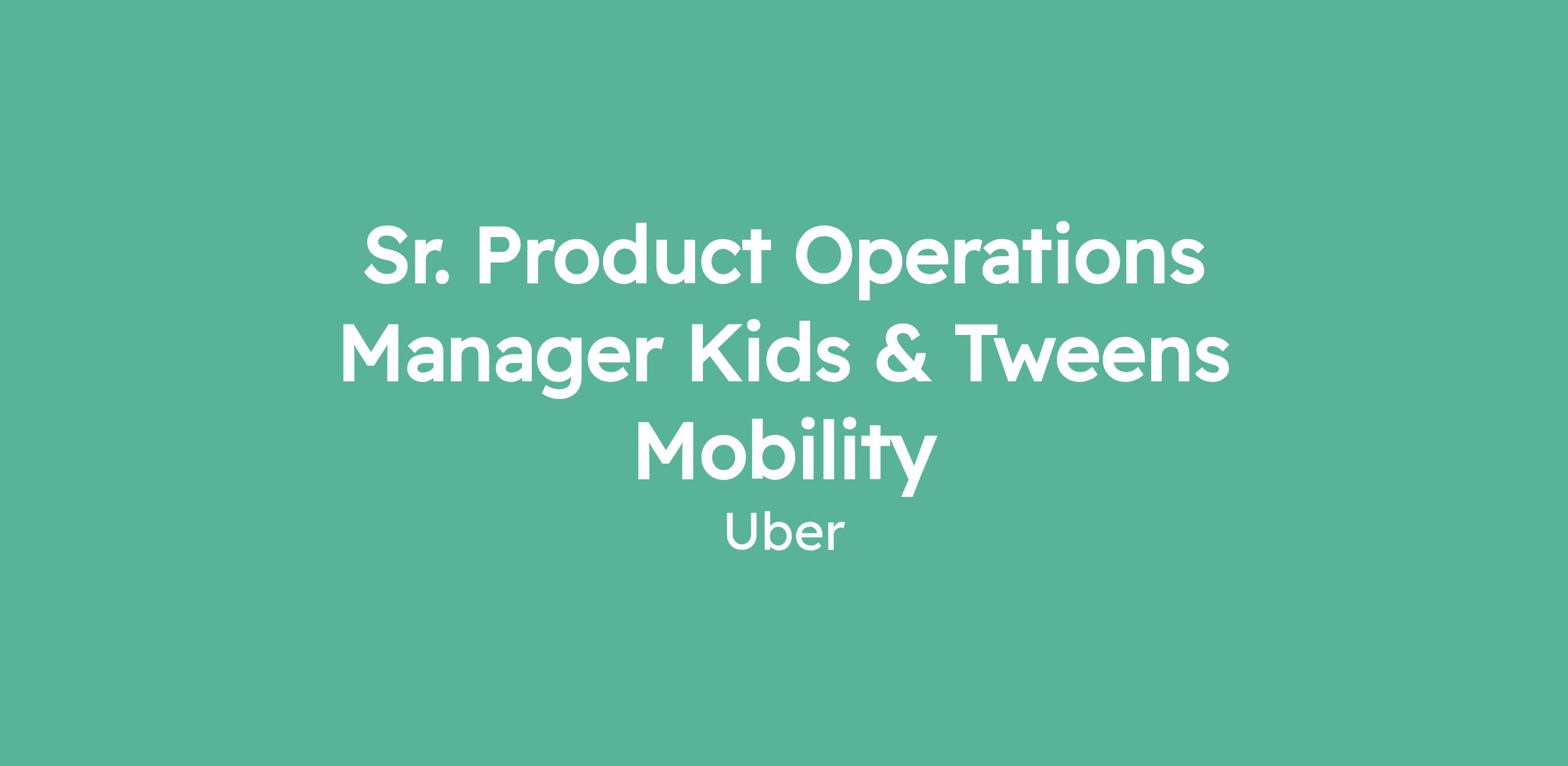 Sr. Product Operations Manager Kids & Tweens Mobility