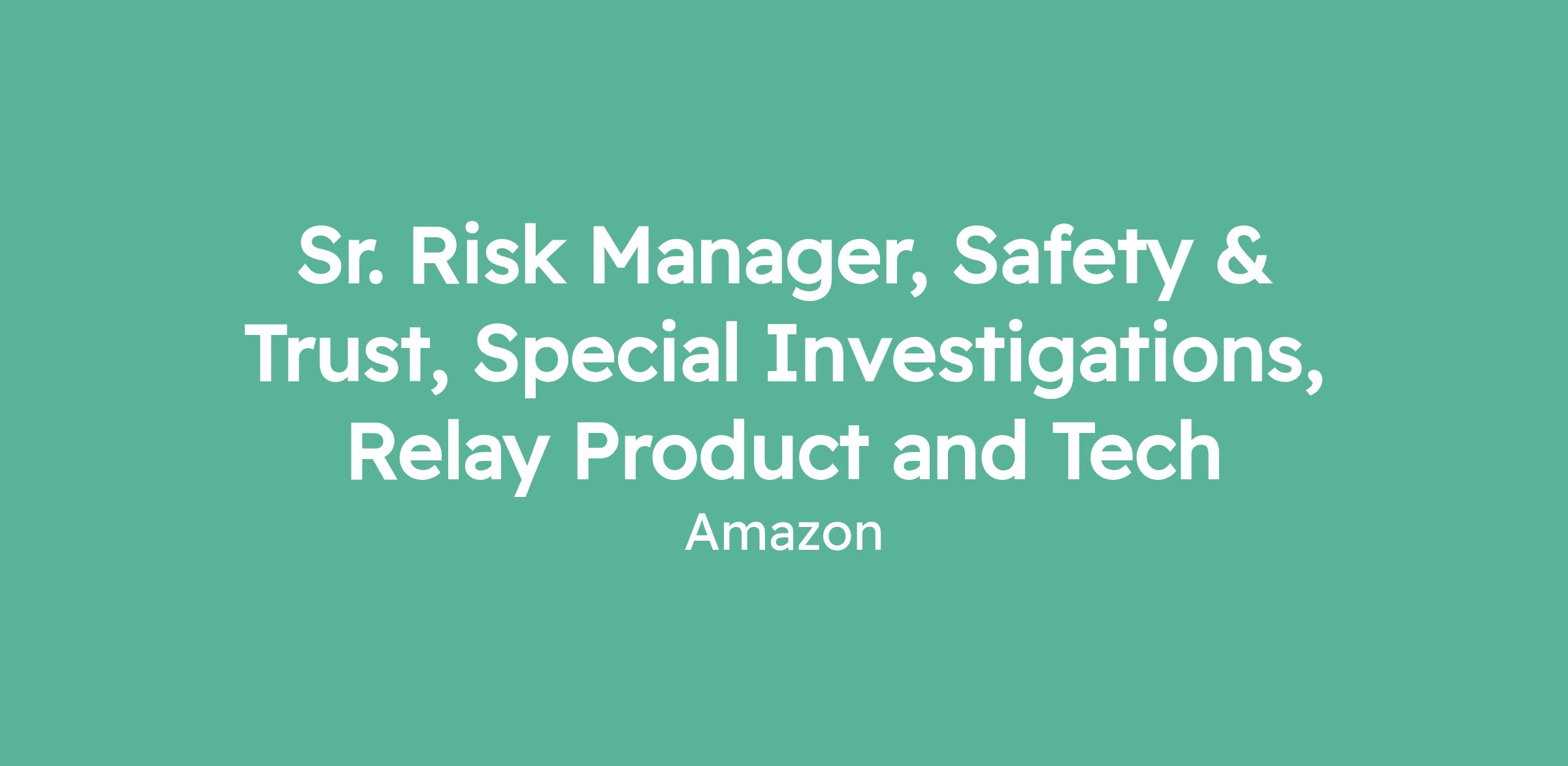 Sr. Risk Manager, Safety & Trust, Special Investigations, Relay Product and Tech