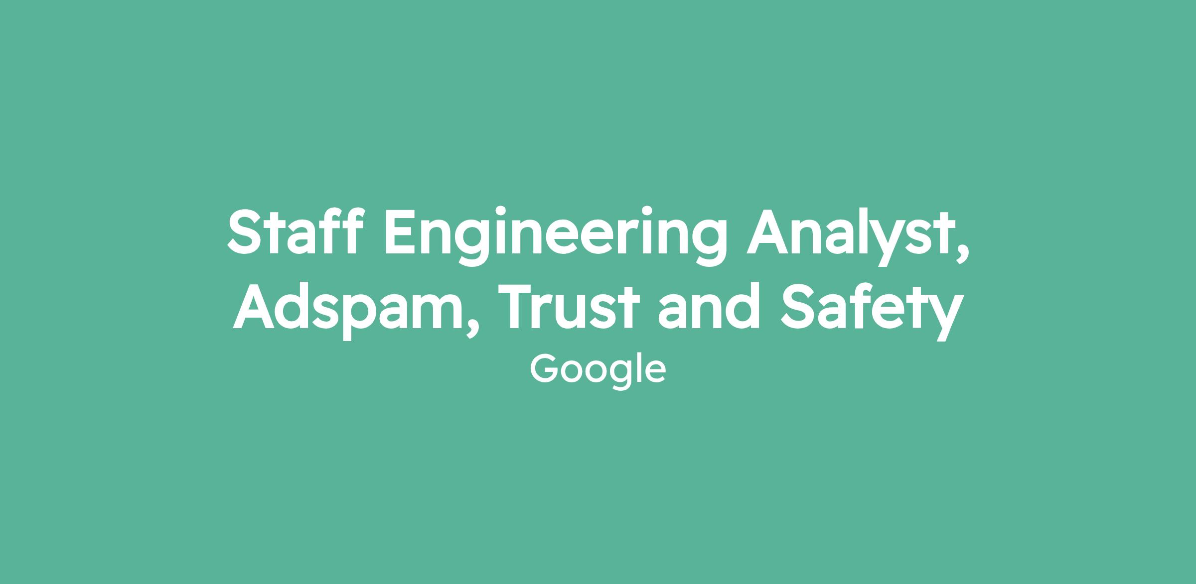 Staff Engineering Analyst, Adspam, Trust and Safety