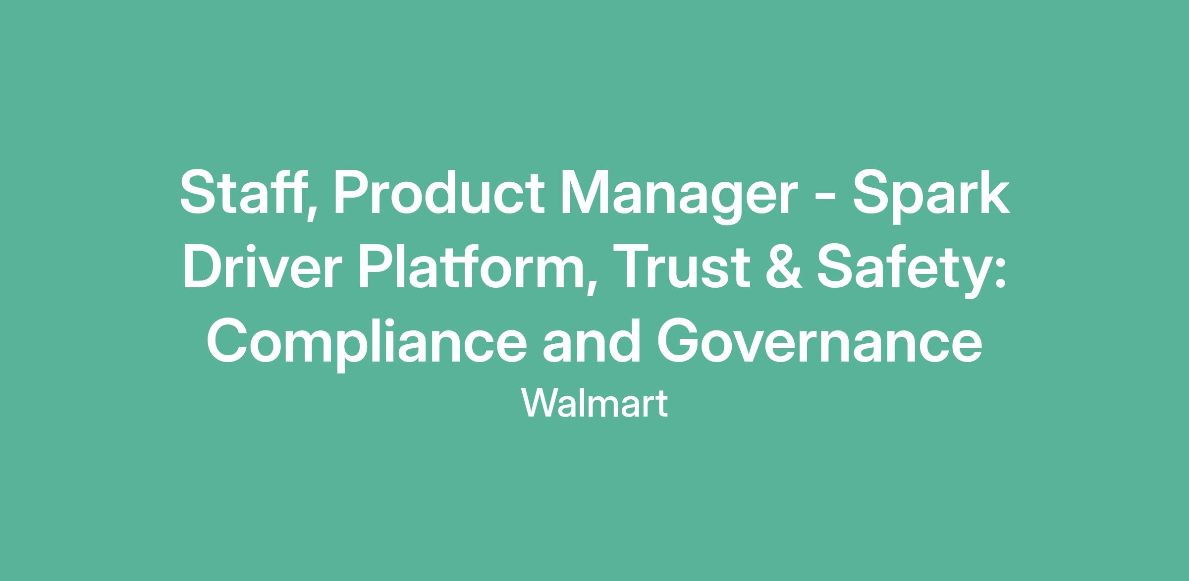 Staff, Product Manager - Spark Driver Platform, Trust & Safety: Compliance and Governance