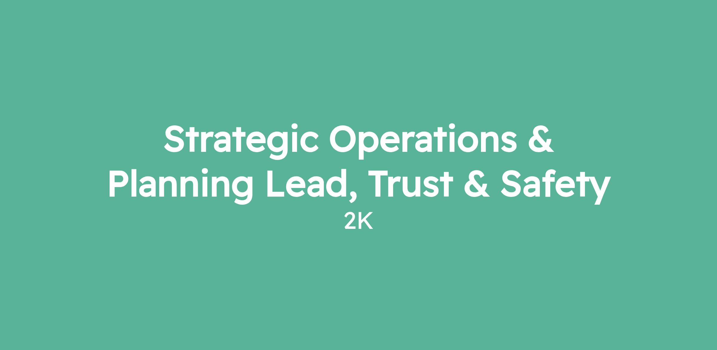 Strategic Operations & Planning Lead, Trust & Safety