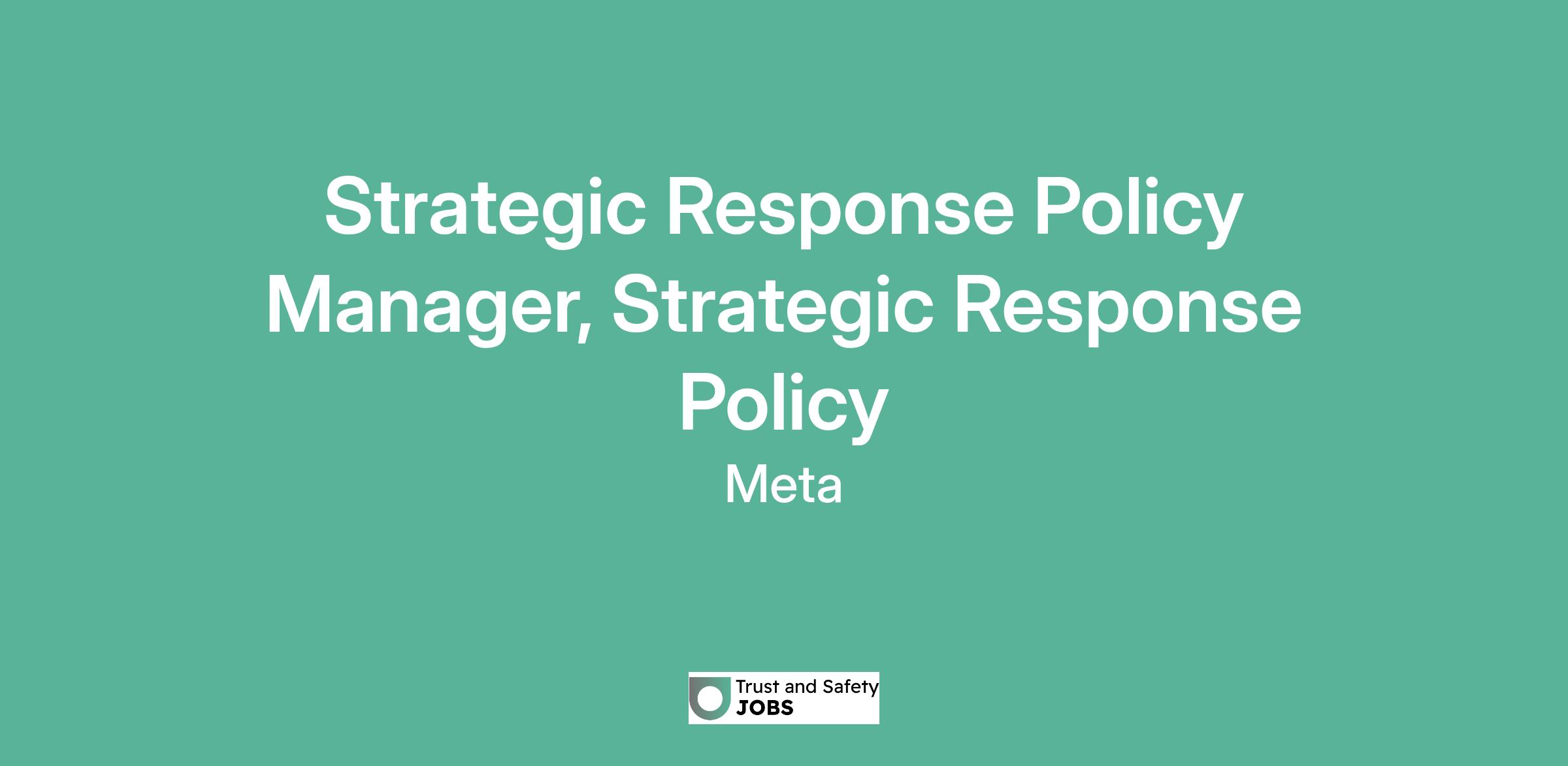 Strategic Response Policy Manager, Strategic Response Policy