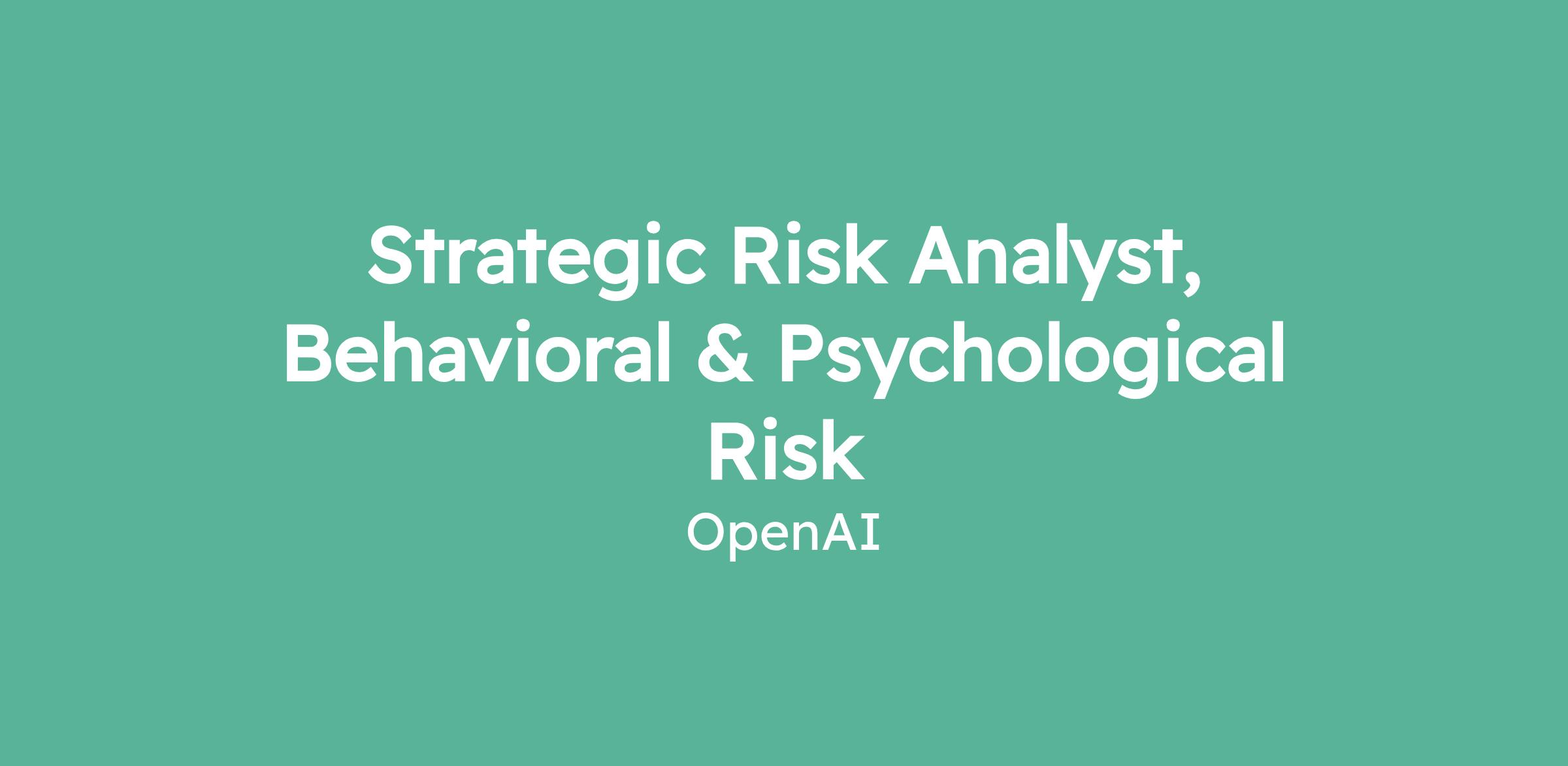 Strategic Risk Analyst, Behavioral & Psychological Risk
