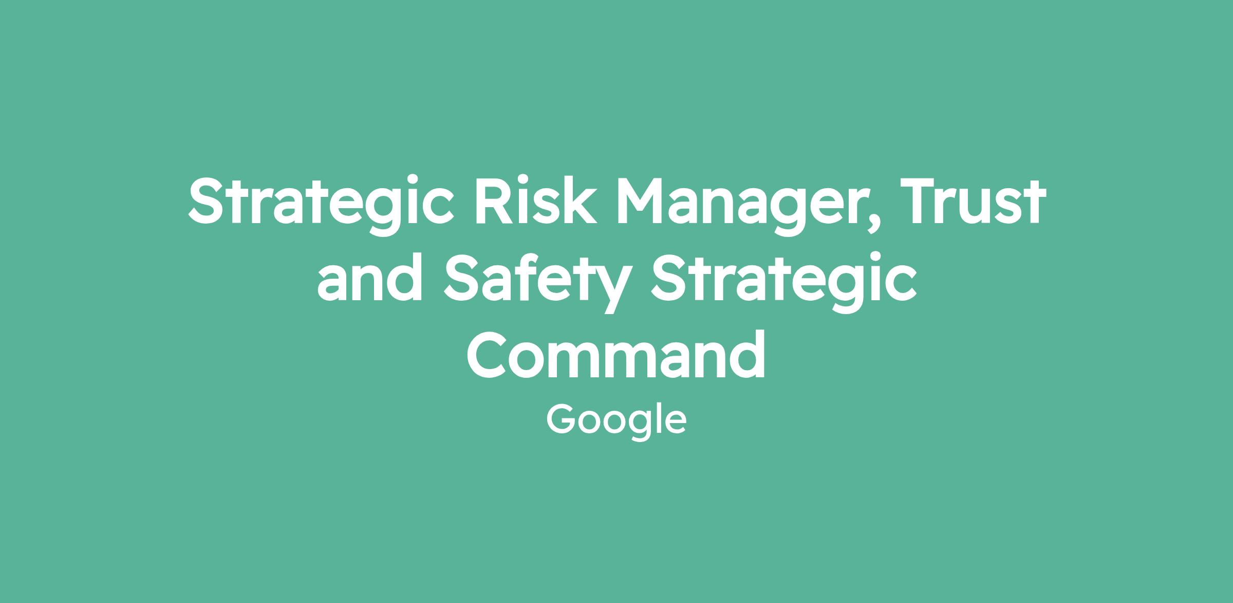 Strategic Risk Manager, Trust and Safety Strategic Command