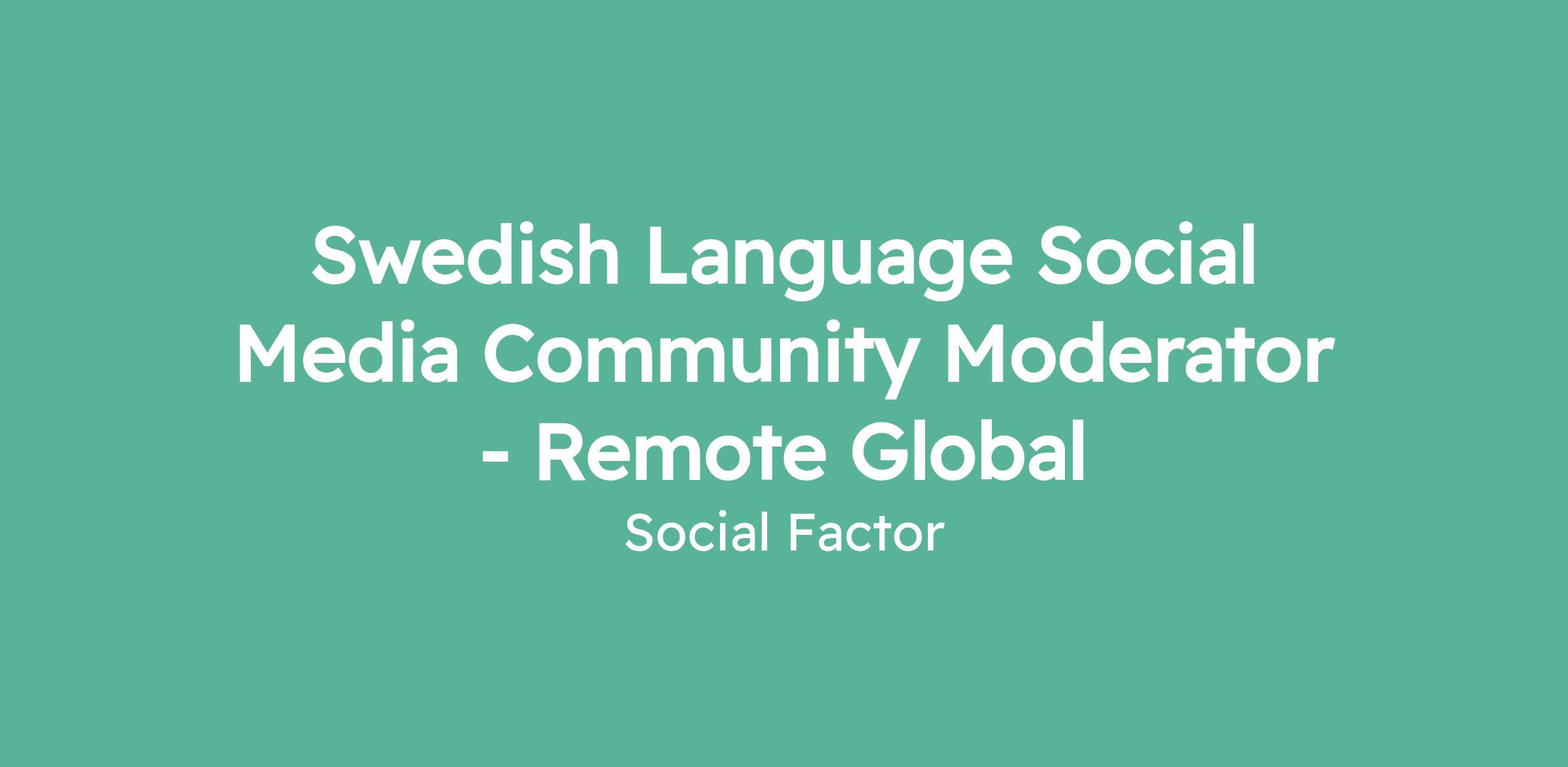 Social Factor is looking for remote, Swedish Language Social Media Community Moderator. The Language Community Moderator will be responsible for the review, removal and escalation of inappropriate content on assigned projects across social media platforms. The Language Community Moderator will be responsible for moderating in their respective languages as well as the potential to work in English-speaking projects where needed.