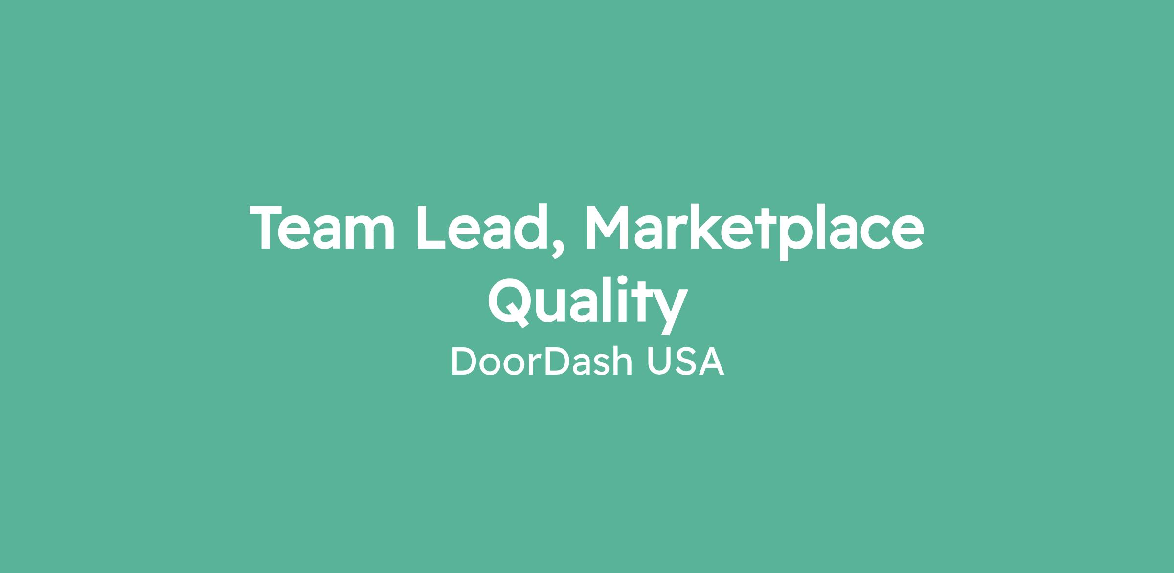 Team Lead, Marketplace Quality