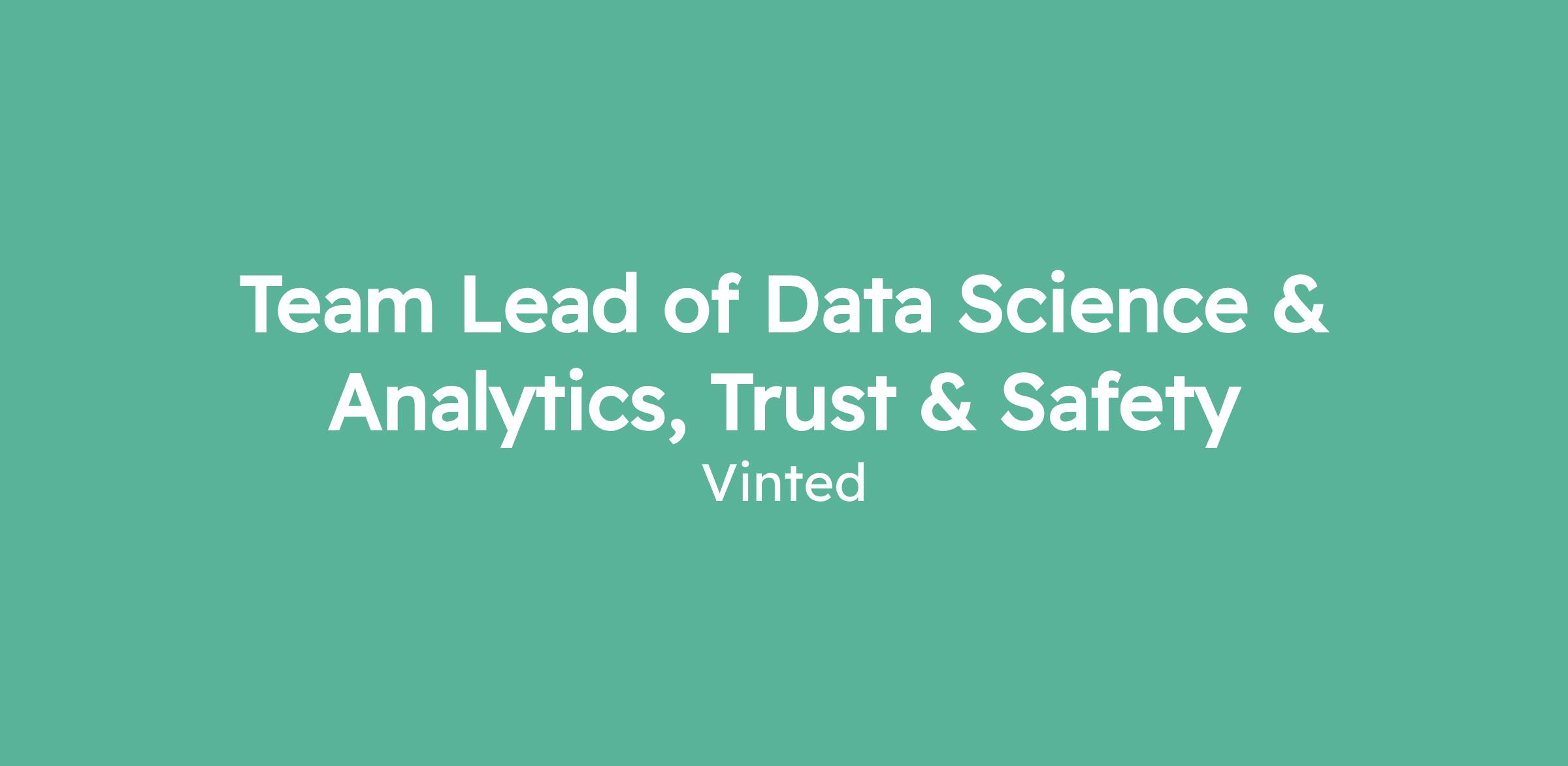 As the Team Lead of Data Science & Analytics, Trust & Safety - Detection, you will help shape the systems that protect millions of people using Vinted.