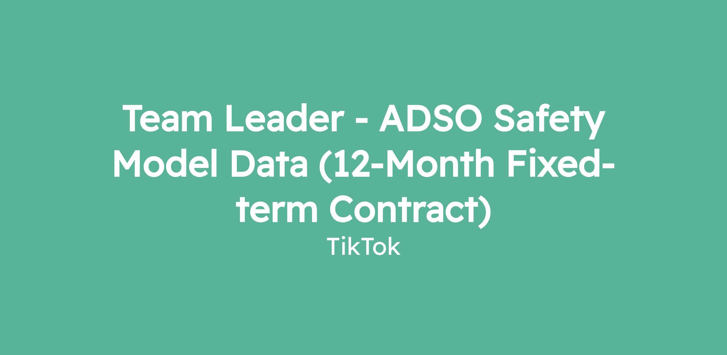 Team Leader - ADSO Safety Model Data (12-Month Fixed-term Contract)