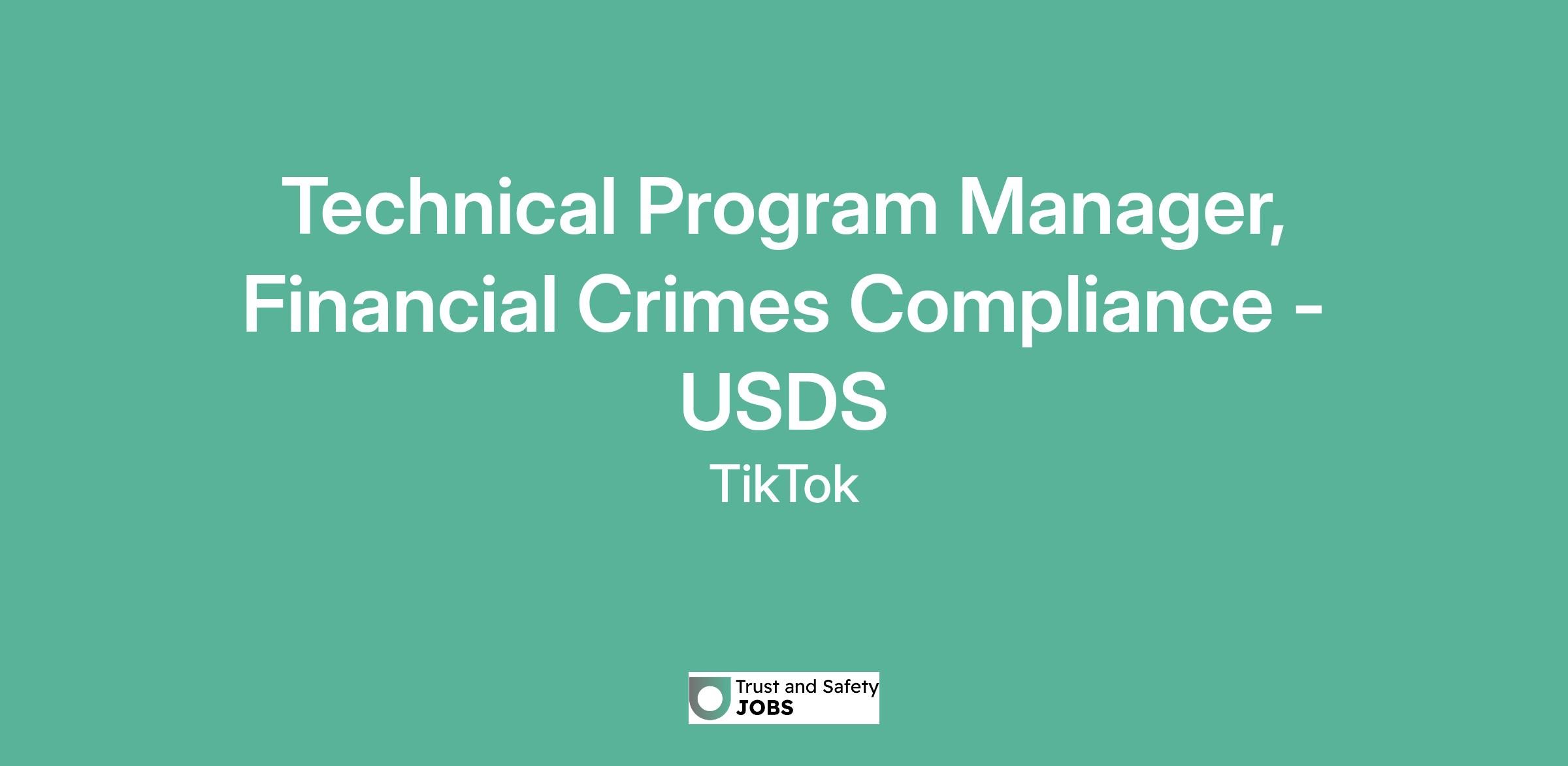 Technical Program Manager, Financial Crimes Compliance - USDS