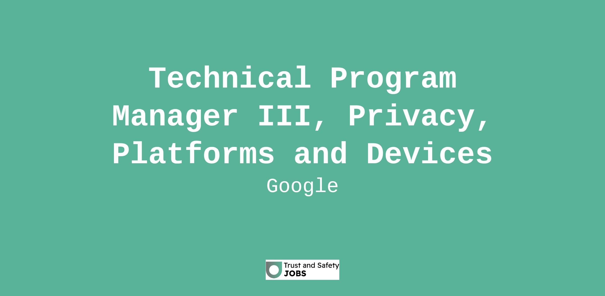 Technical Program Manager III, Privacy, Platforms and Devices