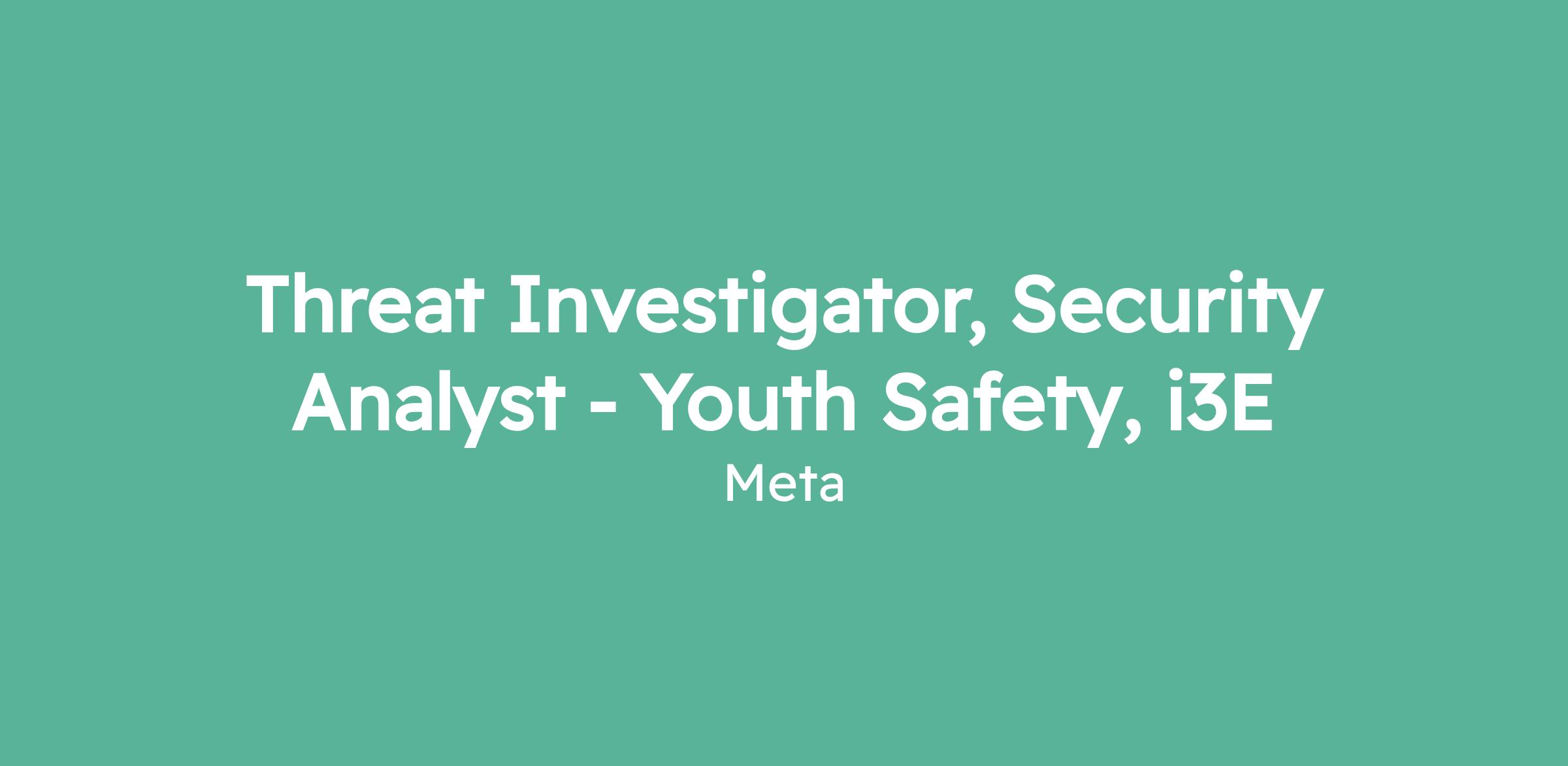 Threat Investigator, Security Analyst - Youth Safety, i3E