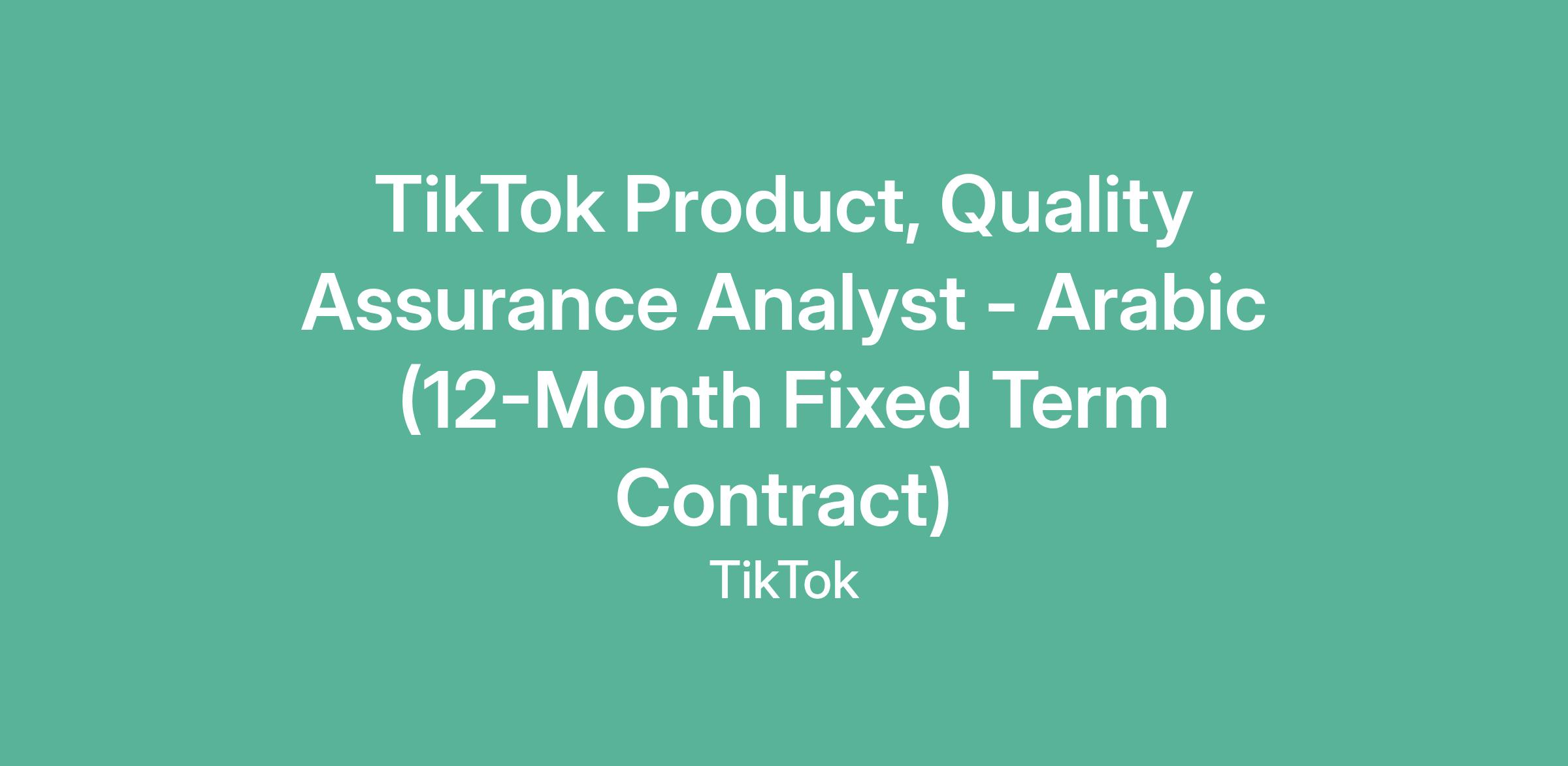 TikTok Product, Quality Assurance Analyst - Arabic (12-Month Fixed Term Contract)