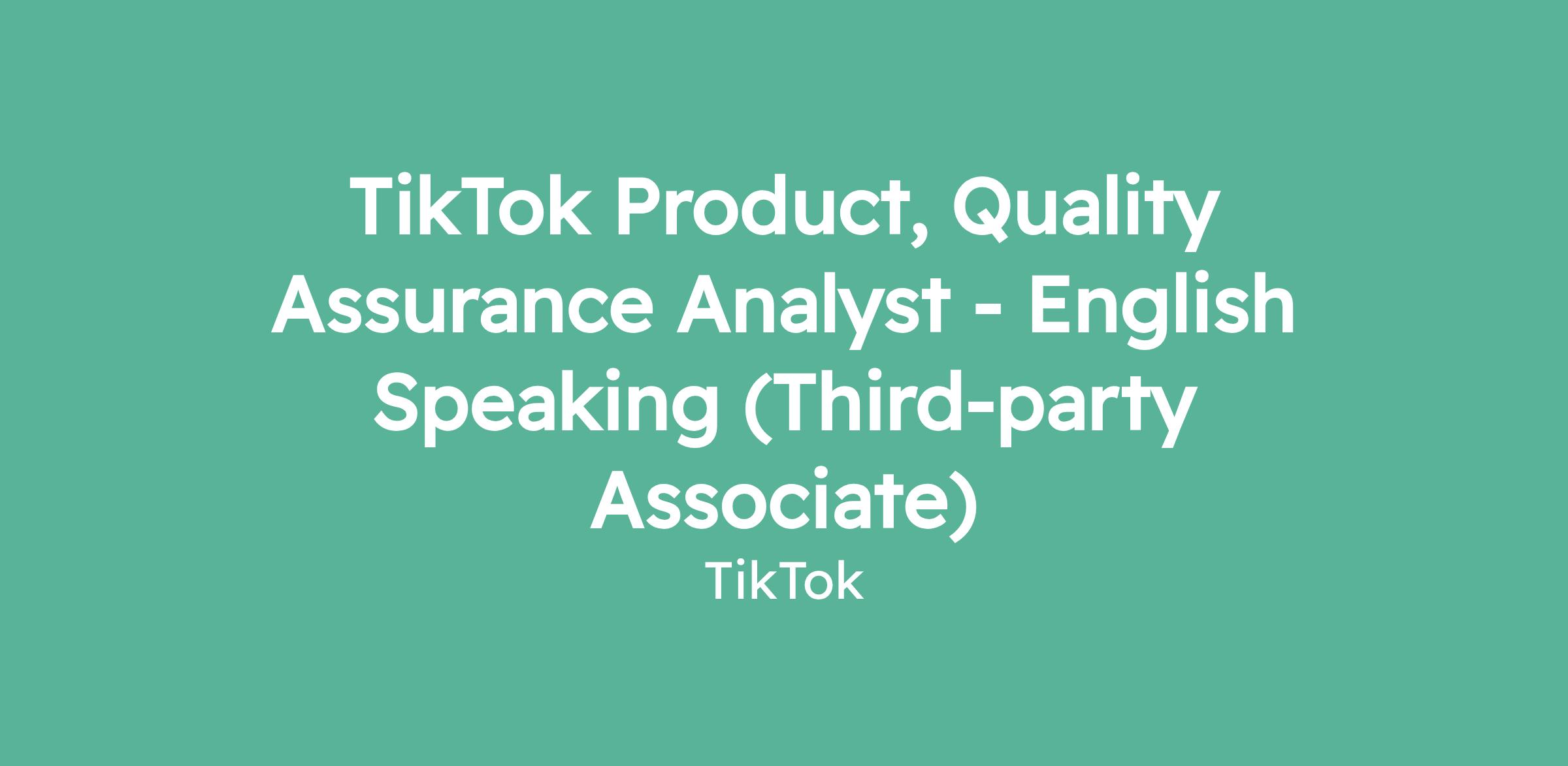 TikTok Product, Quality Assurance Analyst - English Speaking (Third-party Associate)