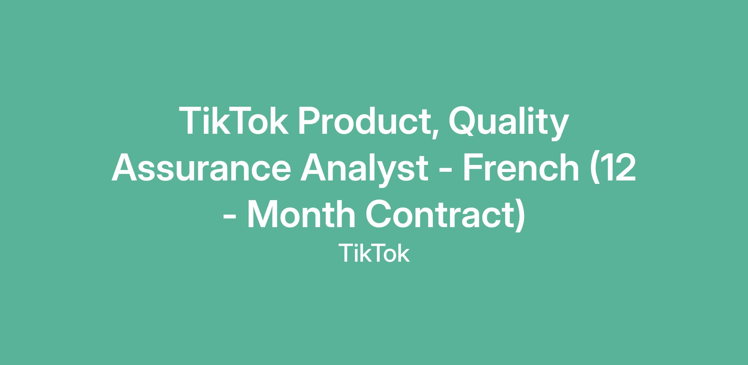 TikTok Product, Quality Assurance Analyst - French (12 - Month Contract)