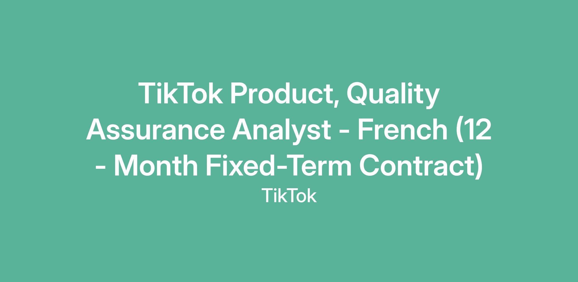TikTok Product, Quality Assurance Analyst - French (12 - Month Fixed-Term Contract)
